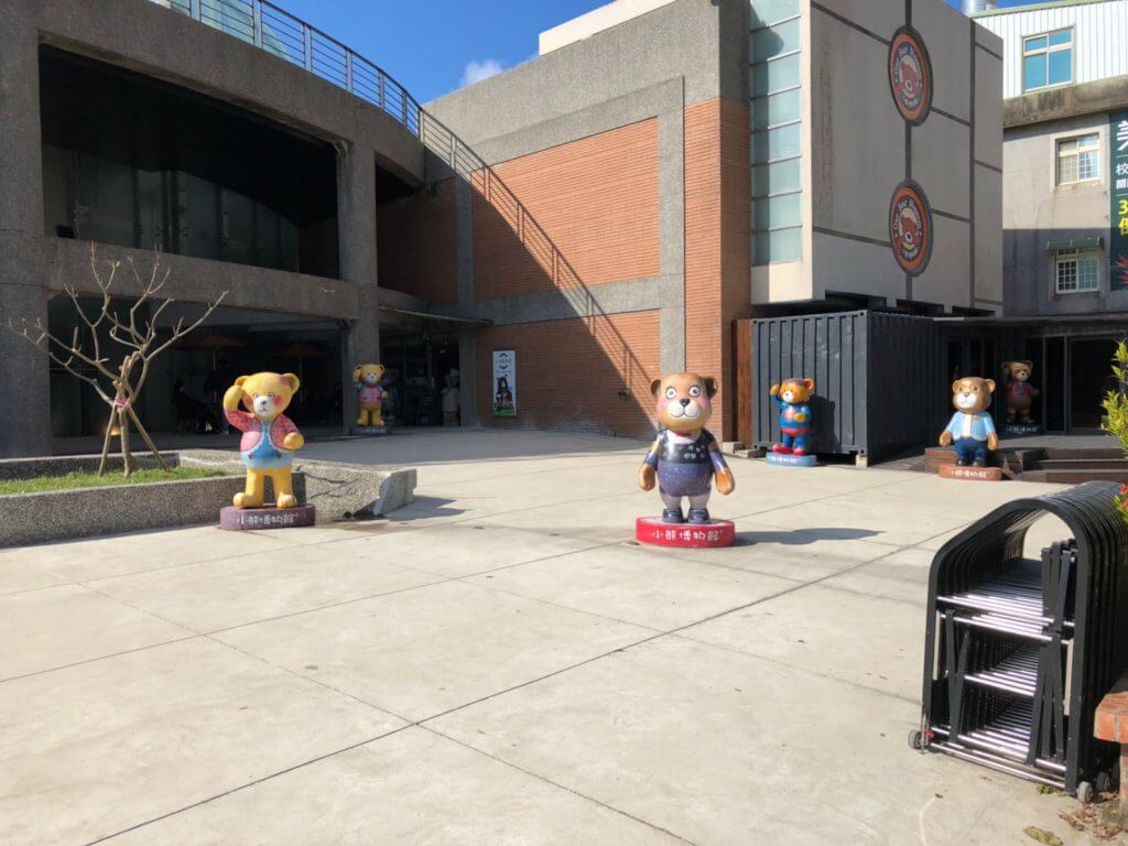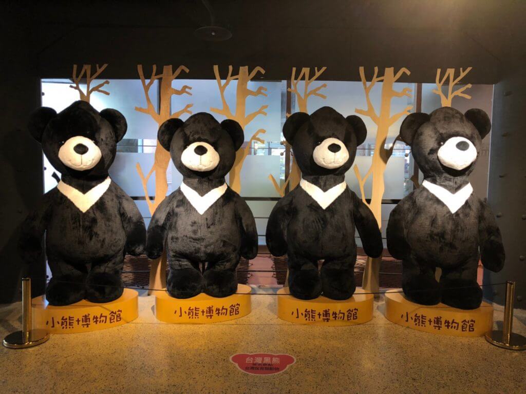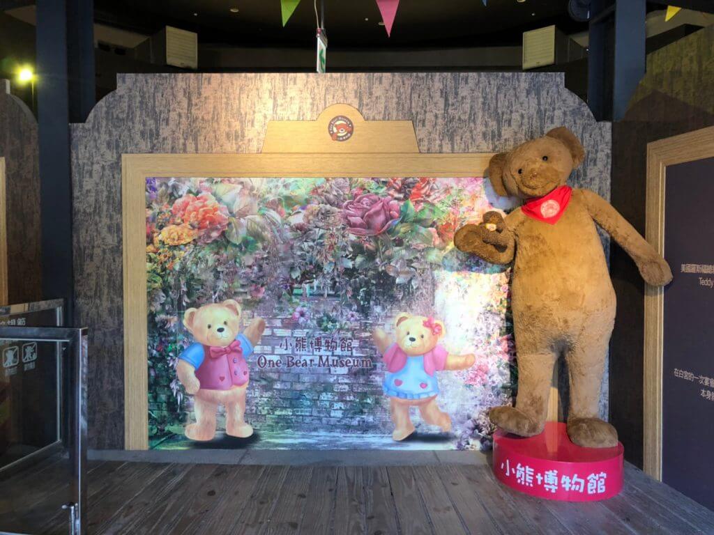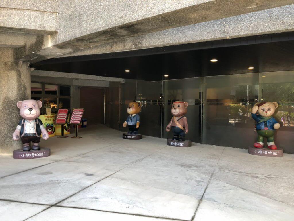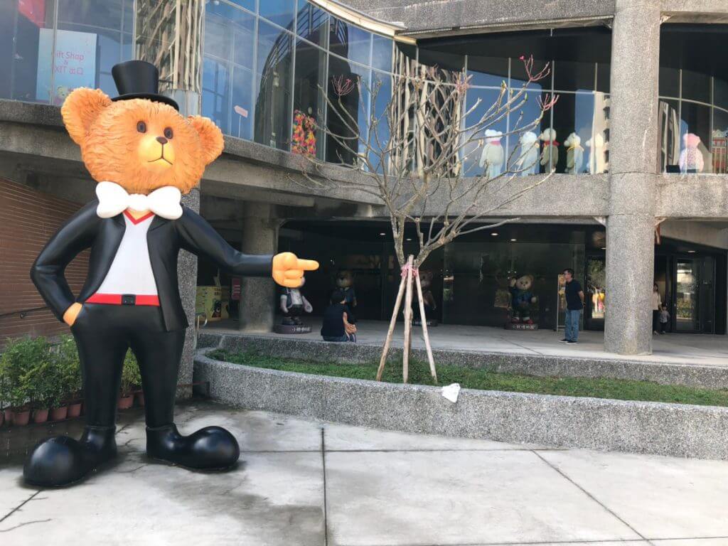 一走進博物館,就看到有好幾隻小熊雕像分別站在不同的位置迎接我們,而每一隻的特色、畫風都不同,有超人的、台灣黑熊的,還有一隻穿著西裝的超巨大紳士小熊,只不過妹妹說這隻小熊眼睛看起來很可怕不敢跟他拍照哈哈