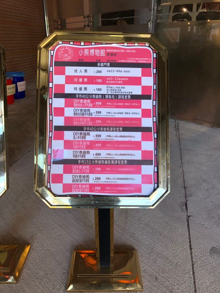 光是在外面的小熊就讓我們在這裡拍了十幾分鐘,我們終於來到了購票處,小熊博物館的購票處在他們裡面的禮品舖,在進去禮品舖之前門口有放置門票價格的告示牌,有一般參觀門票和DIY套票,可以先在外面選好了在進去購票喲