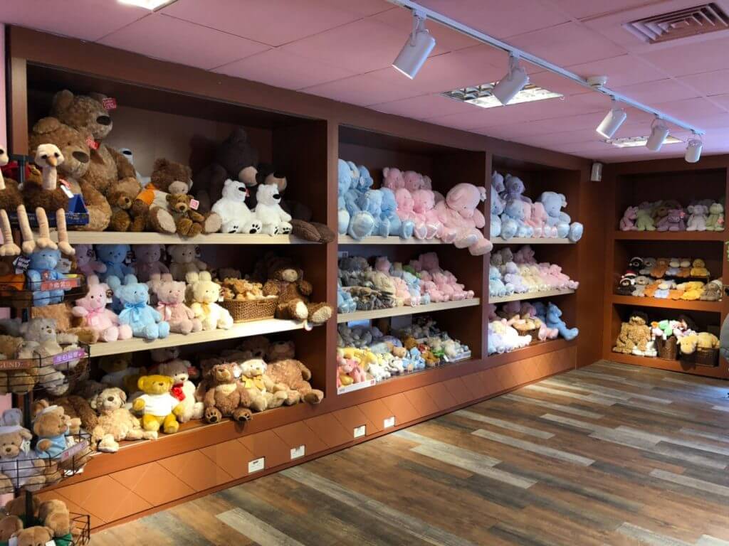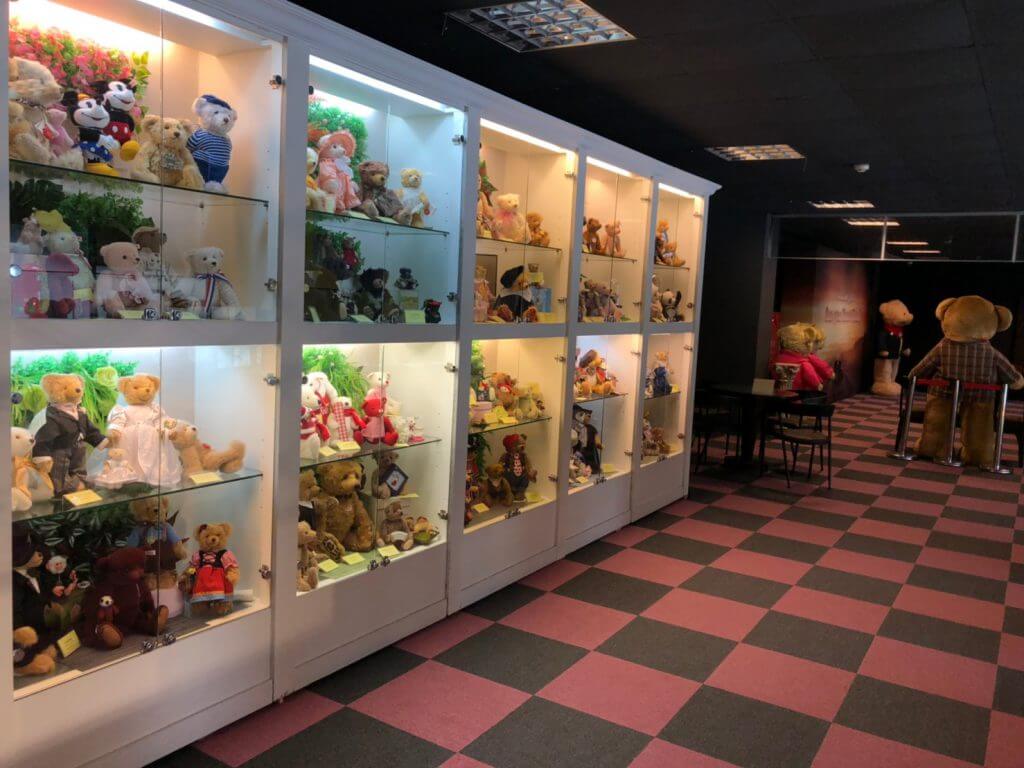 而在往更裡面走,則是商品展示區,櫥窗裡的小熊都是在販售的,只是這些小熊的價錢實在是高的可怕,難怪他們分別被收在櫥窗裡好好保存,如果你真的要將這裡的小熊帶回家,直接告訴工作人員她就會協助你處理後續的動作喲