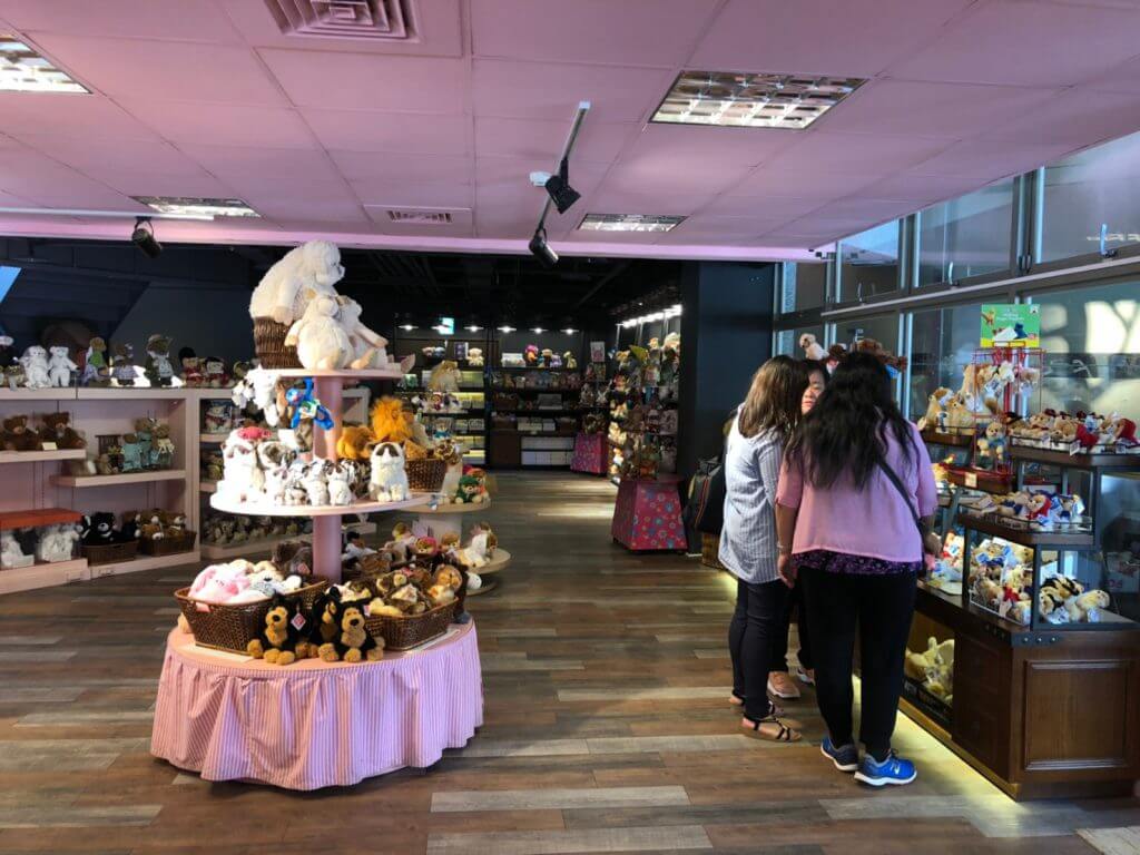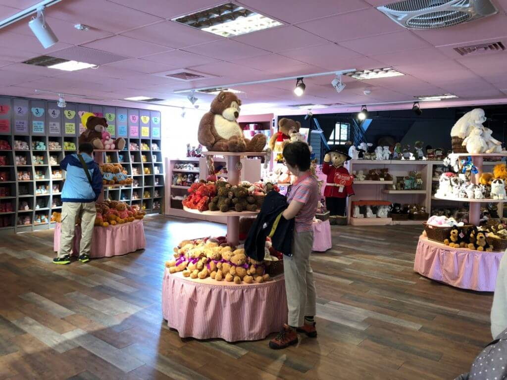 一進去禮品舖,這個就是所謂的熊熊天堂吧,產品架上有各式各樣的小熊,大的小的長毛捲毛應有盡有,我們一行人一進到禮品舖直喊好可愛,腦波有點弱的我,只能一直控制自己不要亂看,不然荷包一定會大失血的