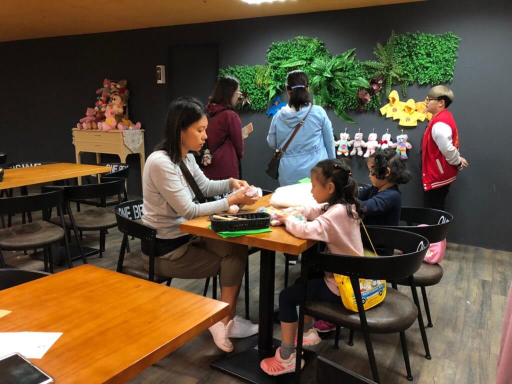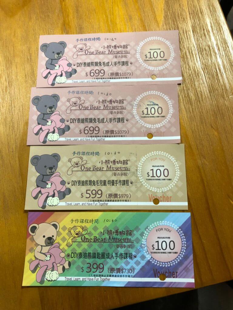 當天我們四個人都買了DIY套票,我和妹妹及小伙伴都是選擇40公分大的類兔毛小熊,媽媽則是選擇了23公分大的小熊鑰匙圈,買完票後,工作人員幫我們安排在10點半的場次,看了一眼時間我們就這樣趕快來到了DIY教室