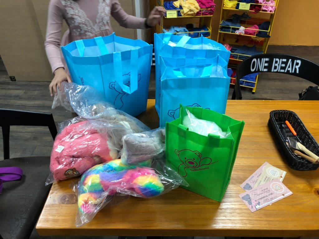 不得不說材料包真的很貼心,一份一個環保袋,如果自己的小熊做完了還可以將小熊放在裡面。將材料都拿出來後,先不要急著開始做,要先檢查自己的小熊是不是沒有瑕疵在開始下一步的動作喲