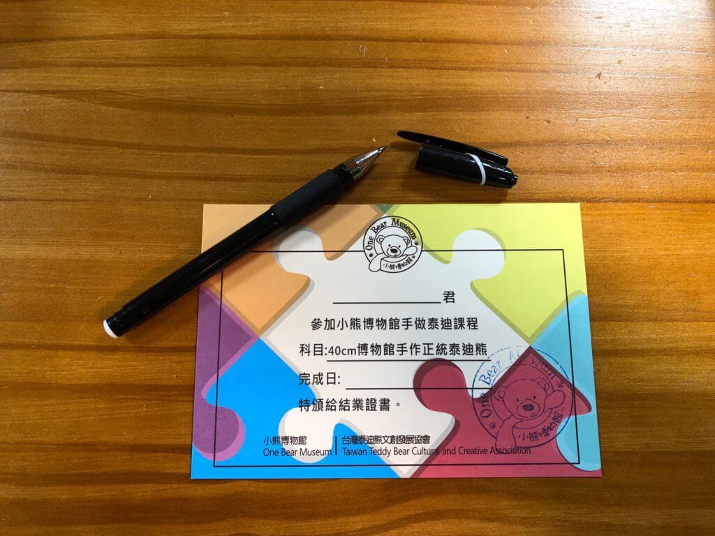 而我做完以後,才發現 其實還蠻多人選彩色花紋的小熊耶,後來媽媽才說 因為彩色花紋的小熊是限定的,好像以後就沒有了,難怪每個人的桌上一定會有一隻彩色小熊。當我們小熊都做好以後,工作人員拿了一張小卡過來,說是給小熊的出生證明,這也太有巧思了吧 !!!!
