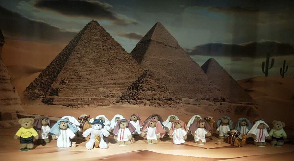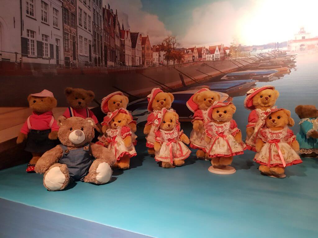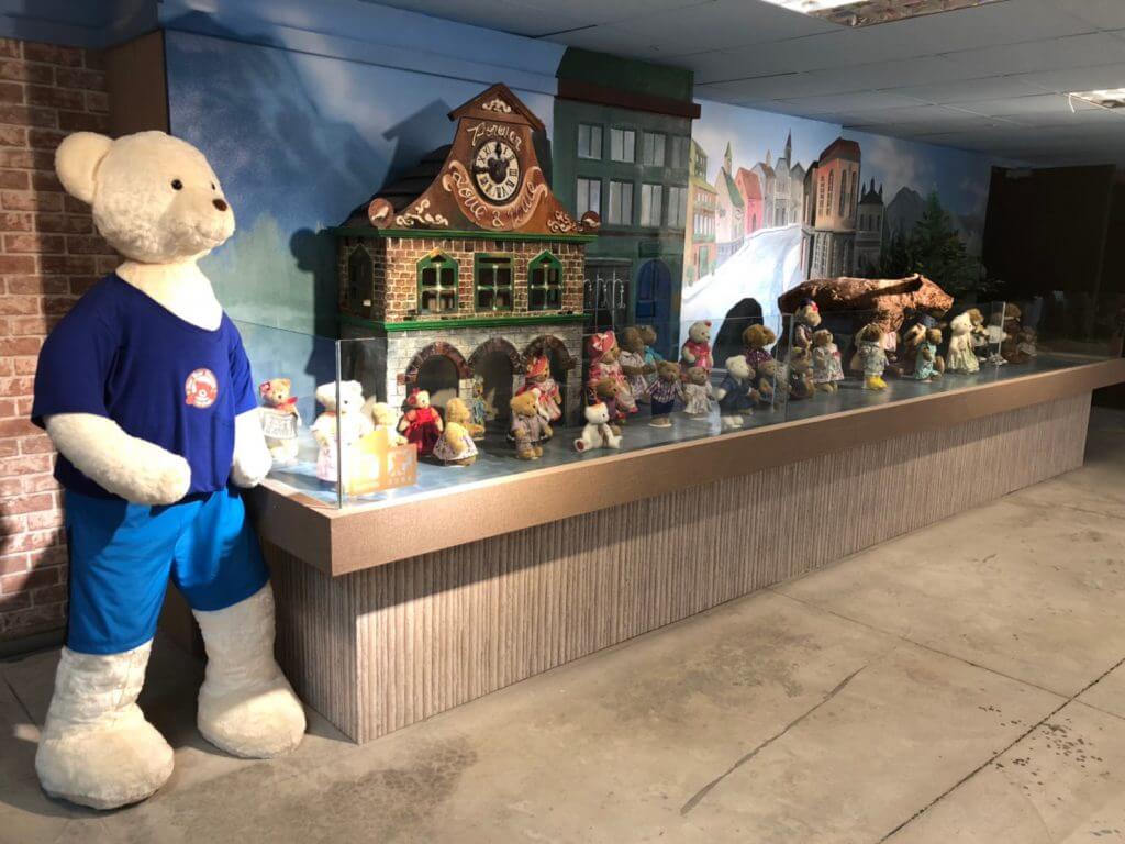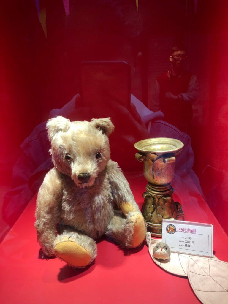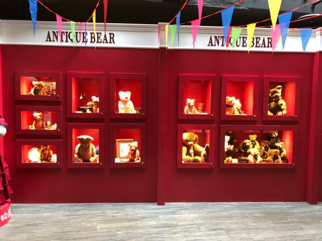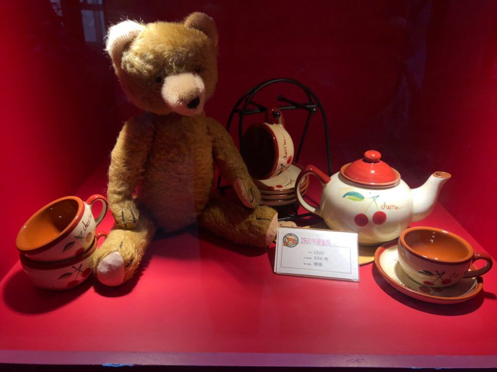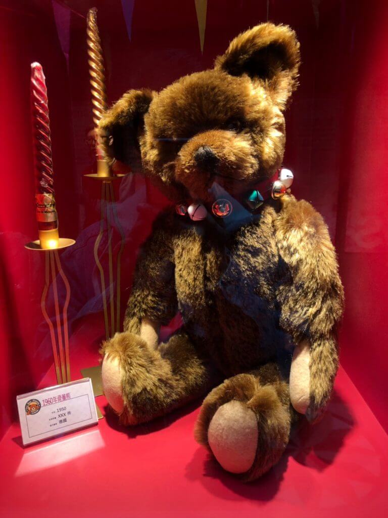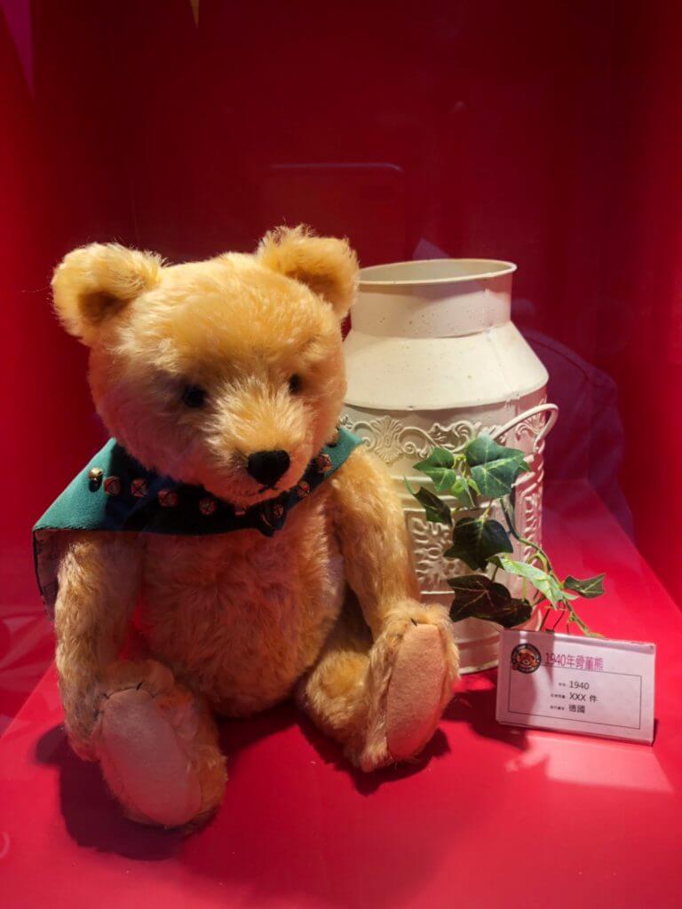 這紅色櫥窗裡,是歷年來製作出來的泰迪熊,每一隻小熊都是用不同的製法及材料製成的,而且有些在全球只限量10隻,其中一隻竟然就收藏在這個博物館裡,每一隻小熊可以說是特別又充滿歷史,甚至在二戰期間的小熊,每一隻都是客製化的,真的是太厲害了