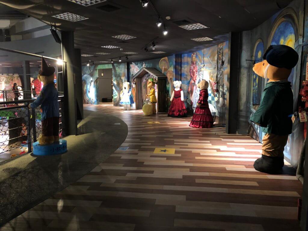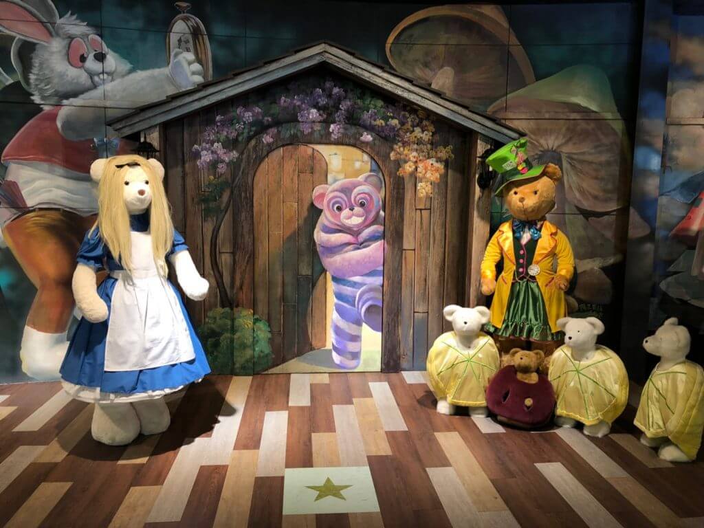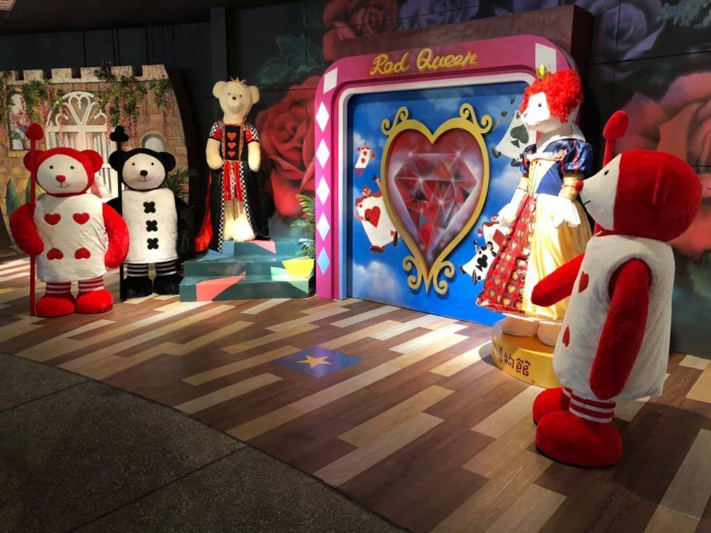 逛完一樓的我們,照理說應該要先去B1才對,但是我們聽到二樓有小熊維尼,就先到了二樓參觀,而二樓則是各種不同故事的小熊的佈景,你可以在這裡跟熊熊們拍照,有愛麗絲、紅心皇后、麵包店等等,看到這些熊熊被打扮成故事中的樣子,真的感覺特別可愛