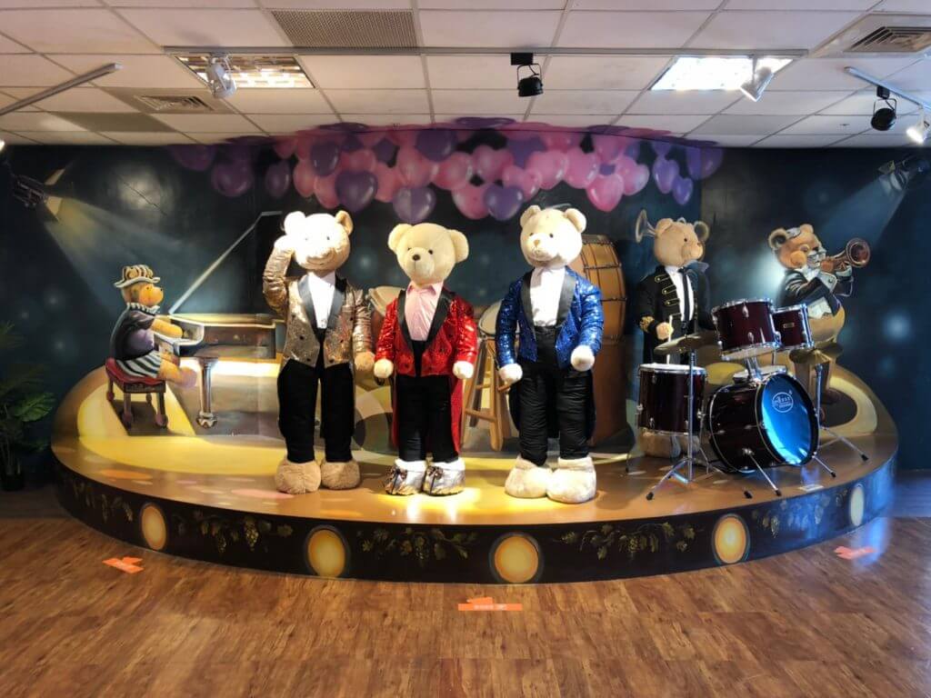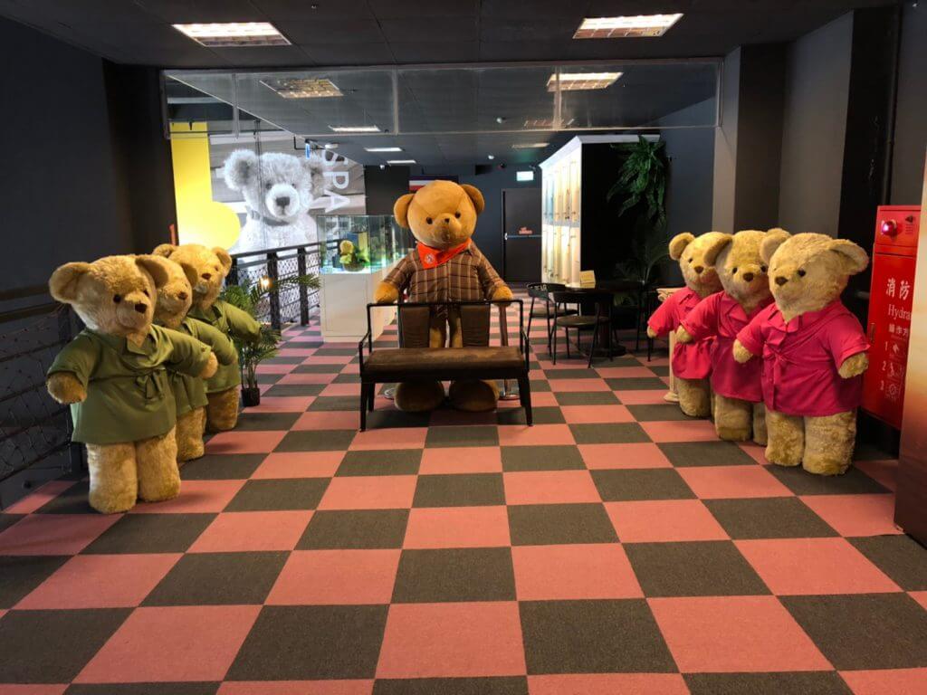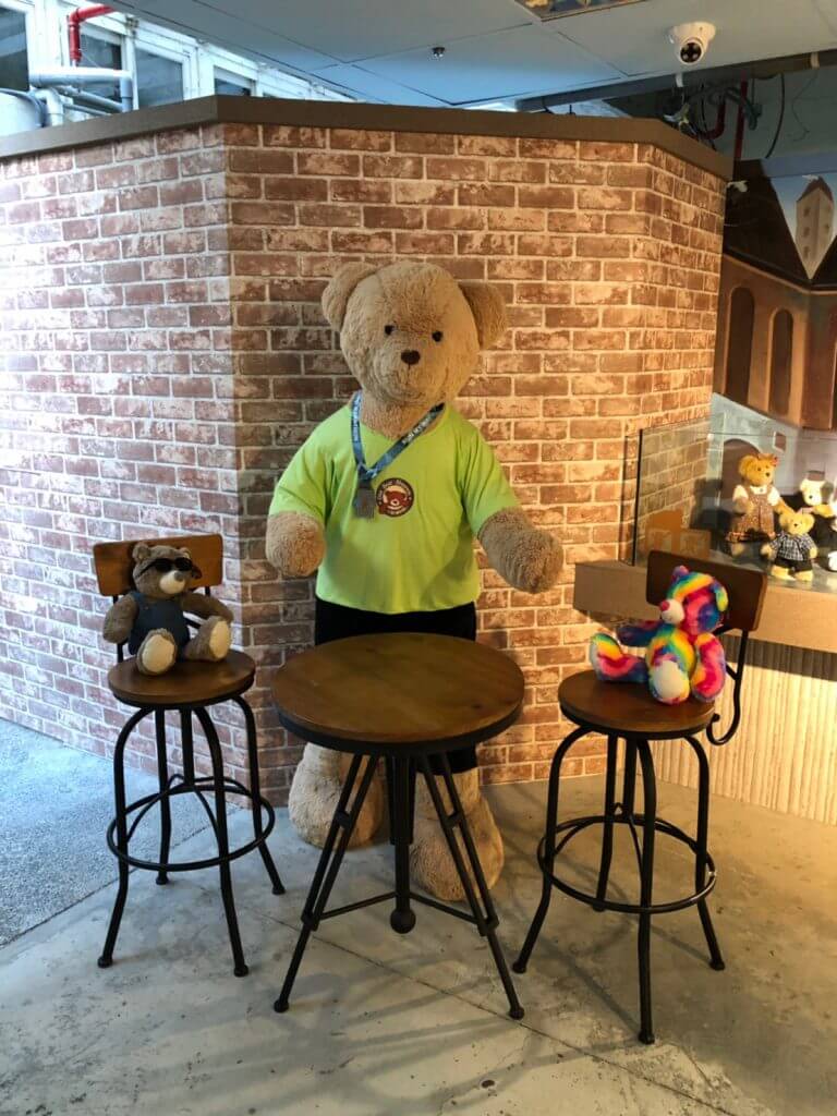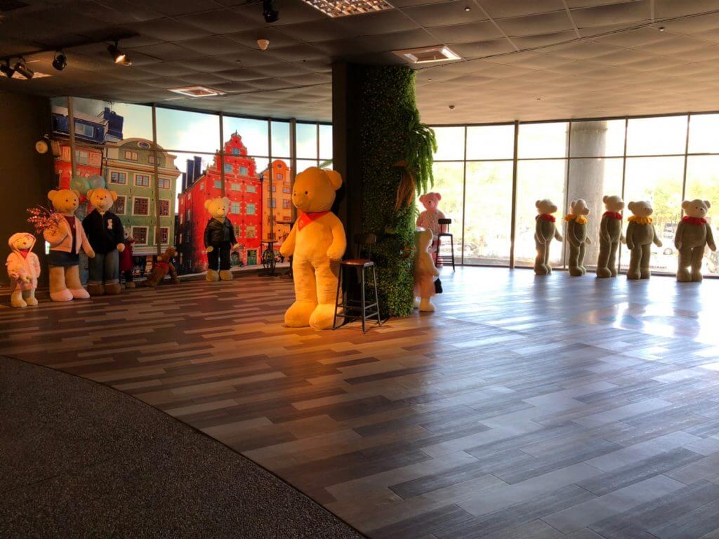接著一旁則是各式各樣不同風格的小熊,有皮衣小熊、上班族小熊、咖啡杯小熊等等,有太多太不一樣的小熊在這裡,手勾手跳著舞的小熊們就好像是在歡迎我們的到來,也許是小熊太過可愛,當天還有小朋友直接衝去熊抱熊熊,感覺特別的激動呢