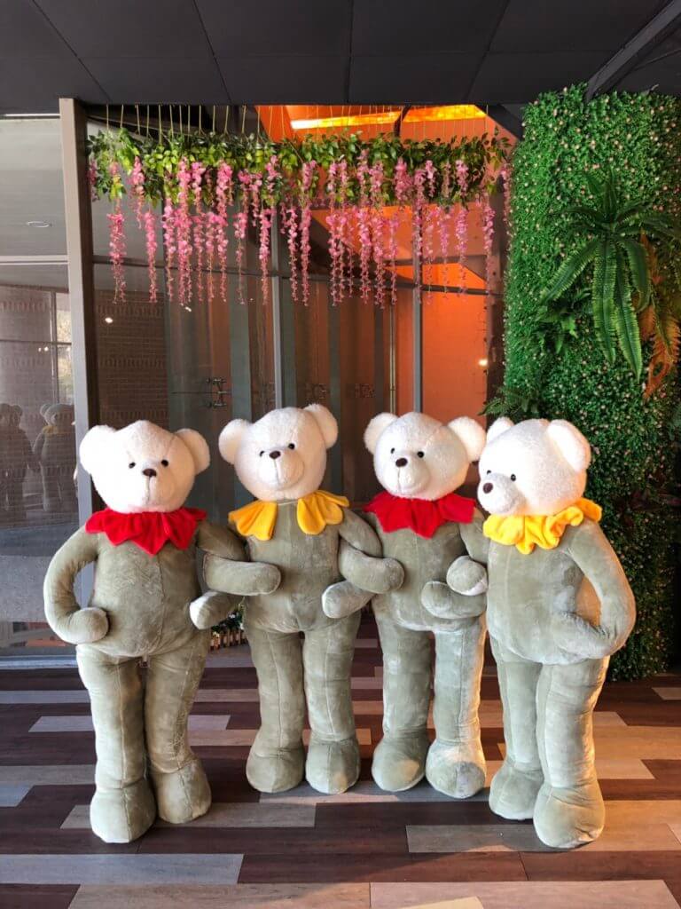 而最後,看到這四隻歡迎我們到來的小熊了嗎,有沒有發現它們哪裡不一樣,沒錯,他們和其他的小熊不同,竟然是露出牙齒的笑,看起來笑的特別的開心呢