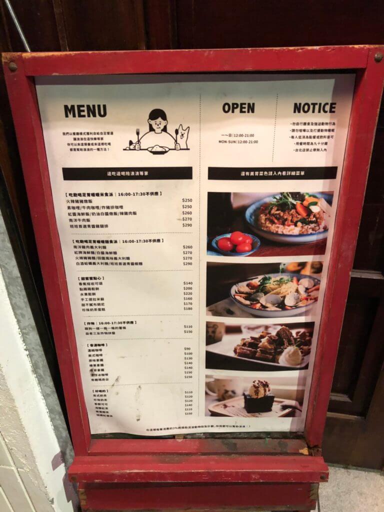 在店門口會看到這裡的菜單,要注意的是 下午4點到5點不提供主餐,想吃主餐的人記得要錯開這個時間哦。