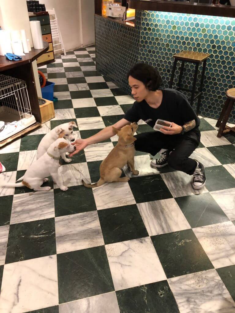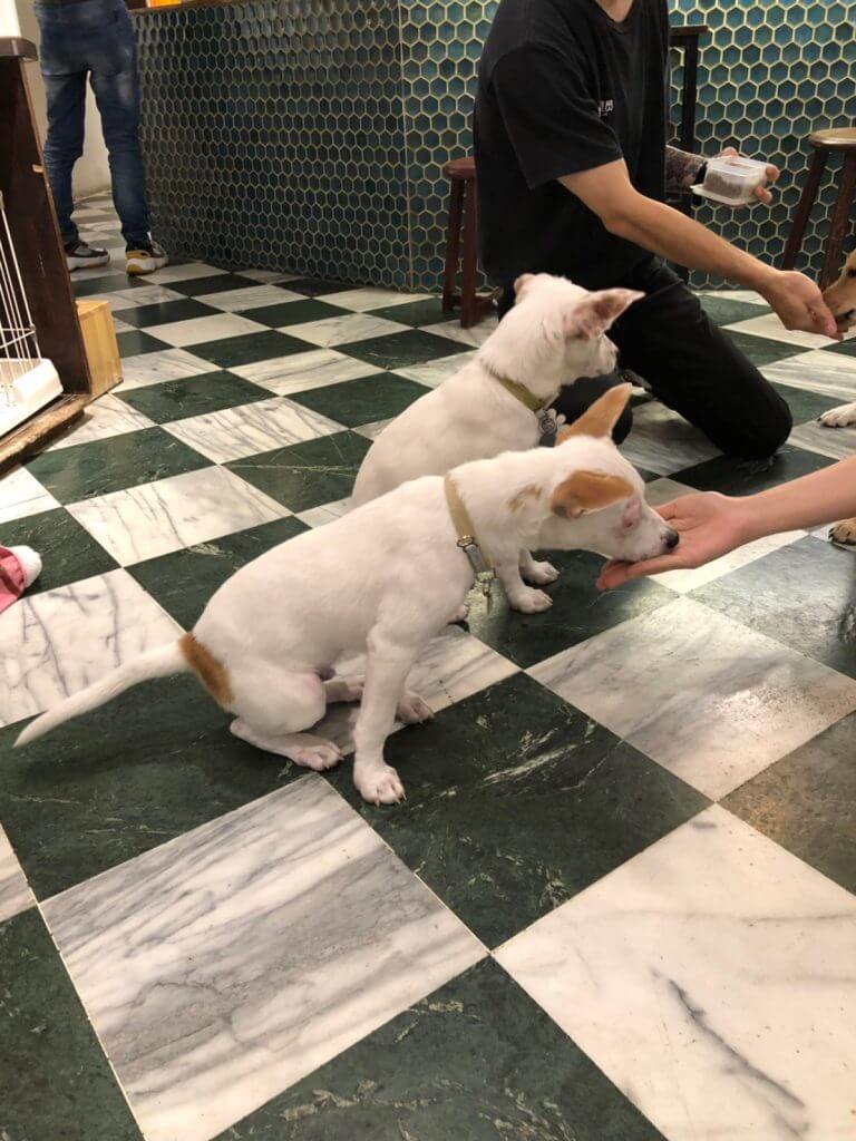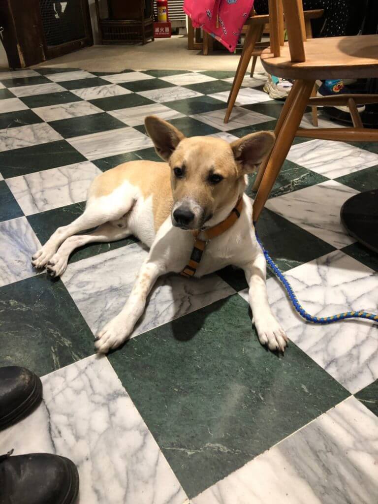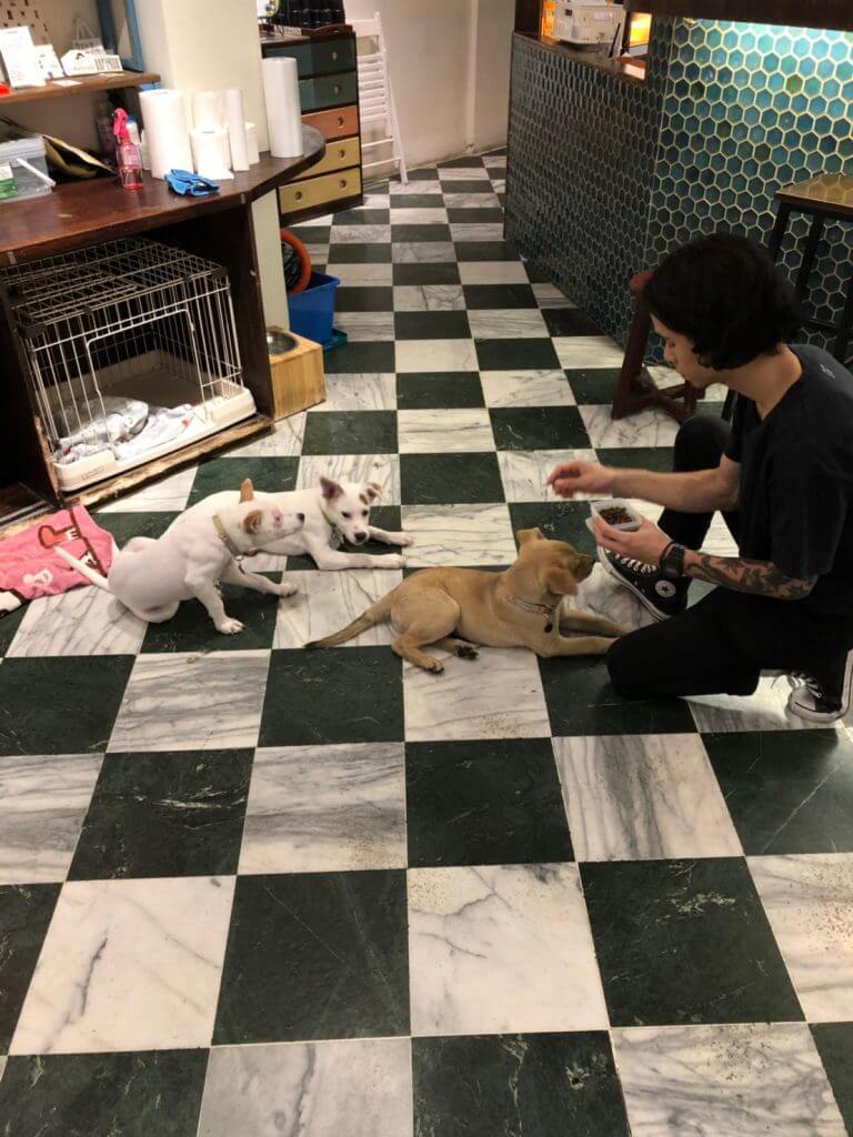 我們一進去就看到3隻活潑好動的小狗狗們在旁邊玩耍,店裡並沒有將動物和座位區隔開,所以狗狗們都有可能跑到你的椅子下玩捉迷藏