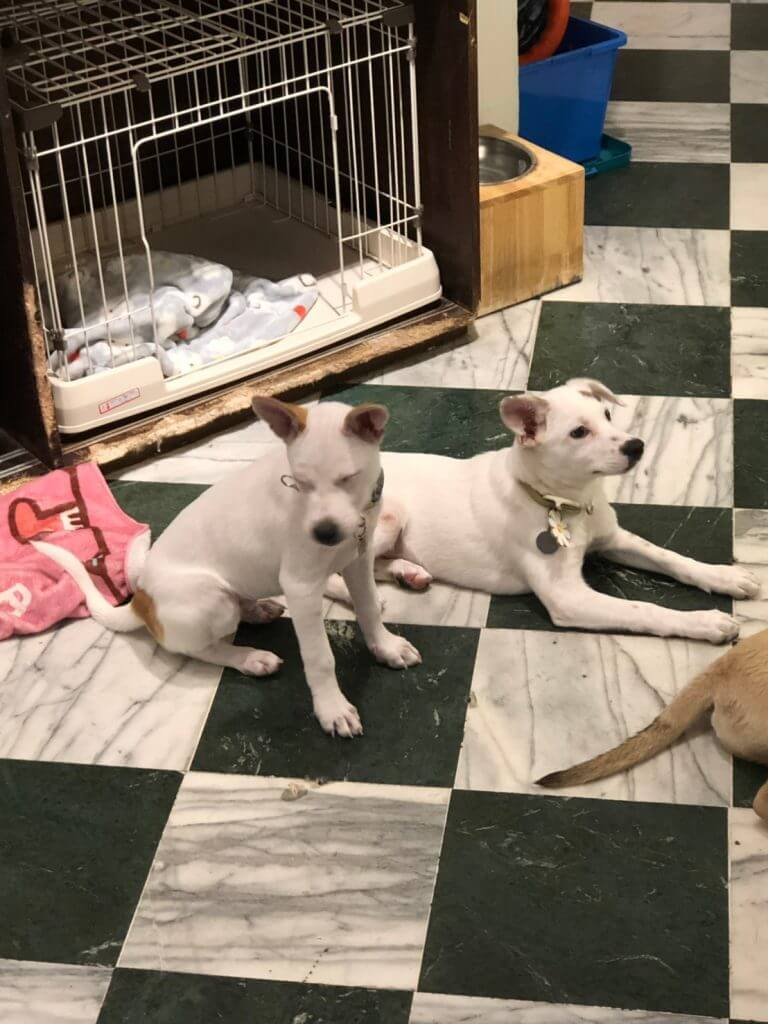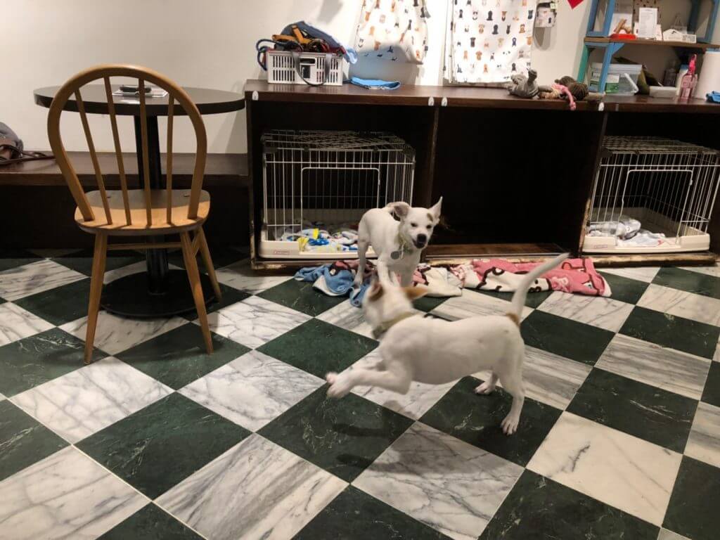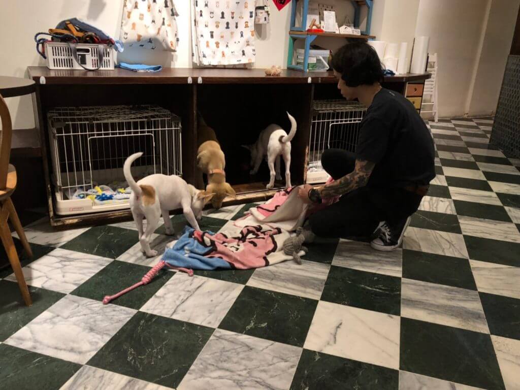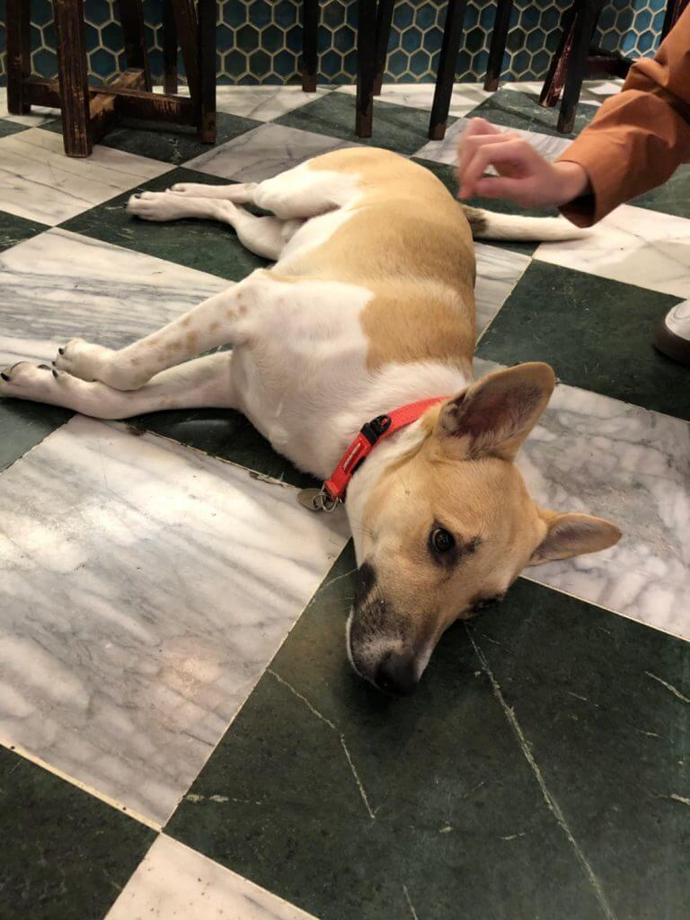我們一進去就看到3隻活潑好動的小狗狗們在旁邊玩耍,店裡並沒有將動物和座位區隔開,所以狗狗們都有可能跑到你的椅子下玩捉迷藏