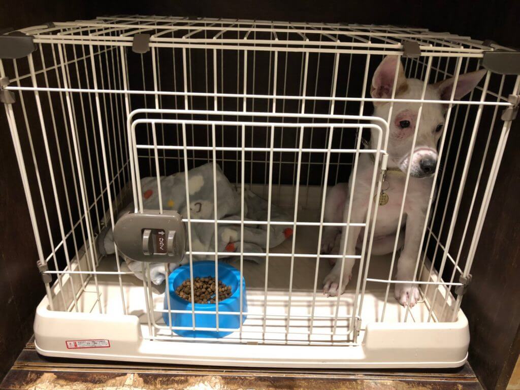 後來他們的吃飯時間到了,小狗狗們則一隻一隻的被關進籠子裡,等待自己的晚餐,而且要等到把自己的晚餐吃完以後才可以再出來,我覺得店家這樣的做法很聰明,就不會發生互相搶食的狀況發生,而大狗狗則是趁這個時間由服務人員帶出去散步溜達