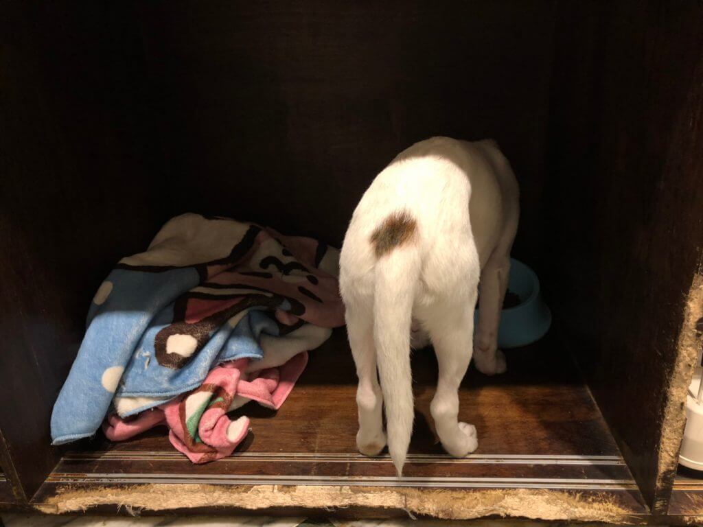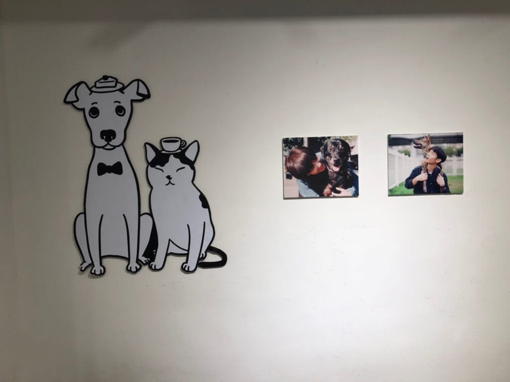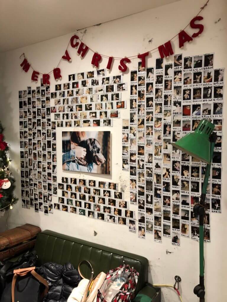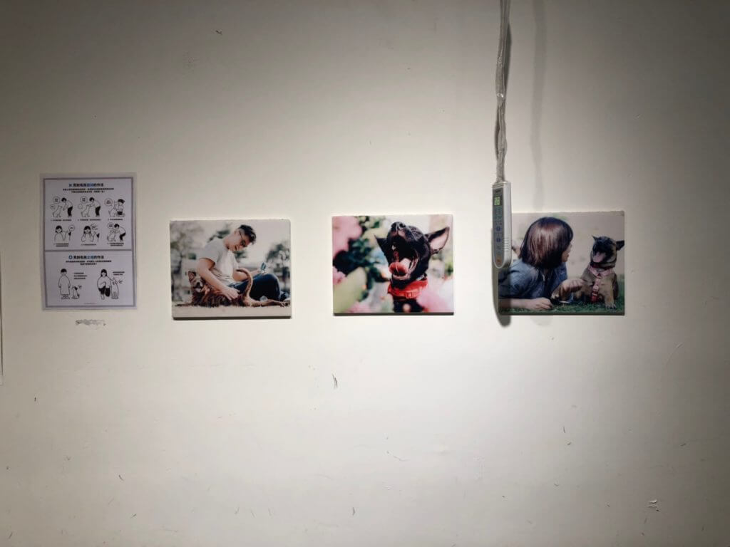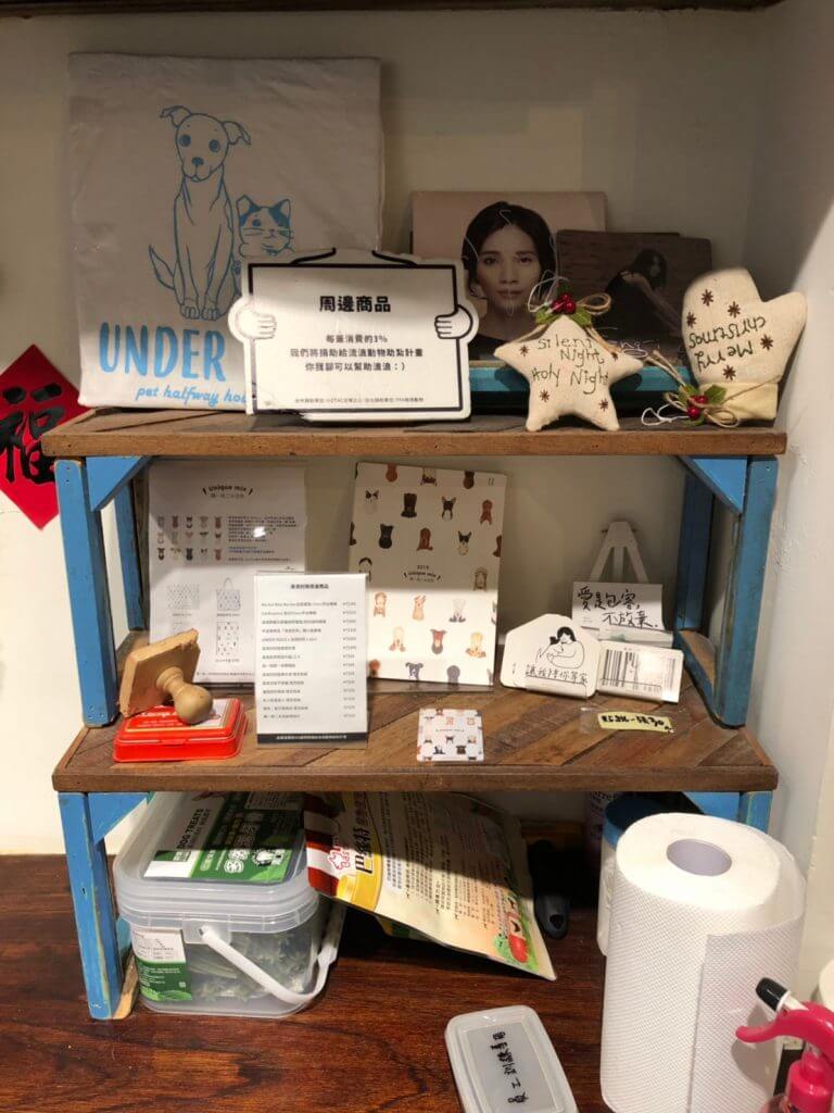 而在狗狗的籠子上方則是還有一些周邊產品,一旁還有許多玩具,看得出來是一間很用心在照顧小動物們的店,還有一面牆黏滿了大家和狗狗們的照片,每張照片都是一個回憶和紀念
