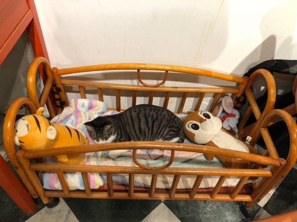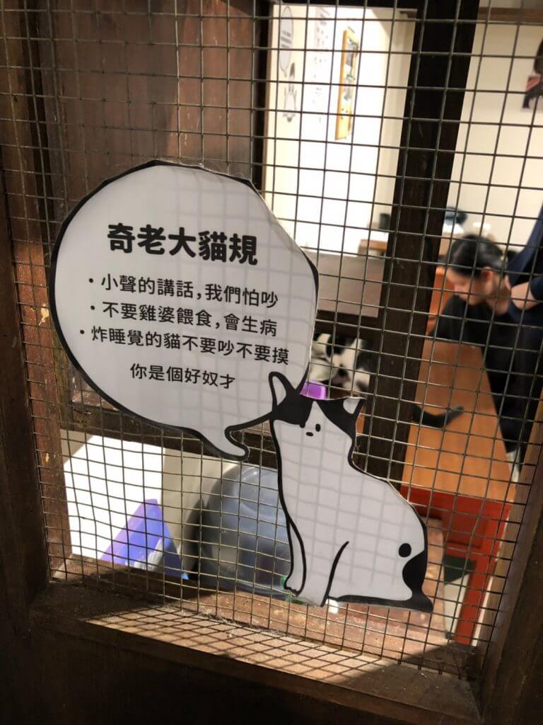 結果一進去是先看到好幾隻慵懶的貓咪分別躺在不同的角落,跟我想像中的不太一樣,除了在走動和玩耍的貓咪外,記得在休息或是吃飯的貓咪不要去逗弄,不然牠們可能會生氣而弄傷你哦