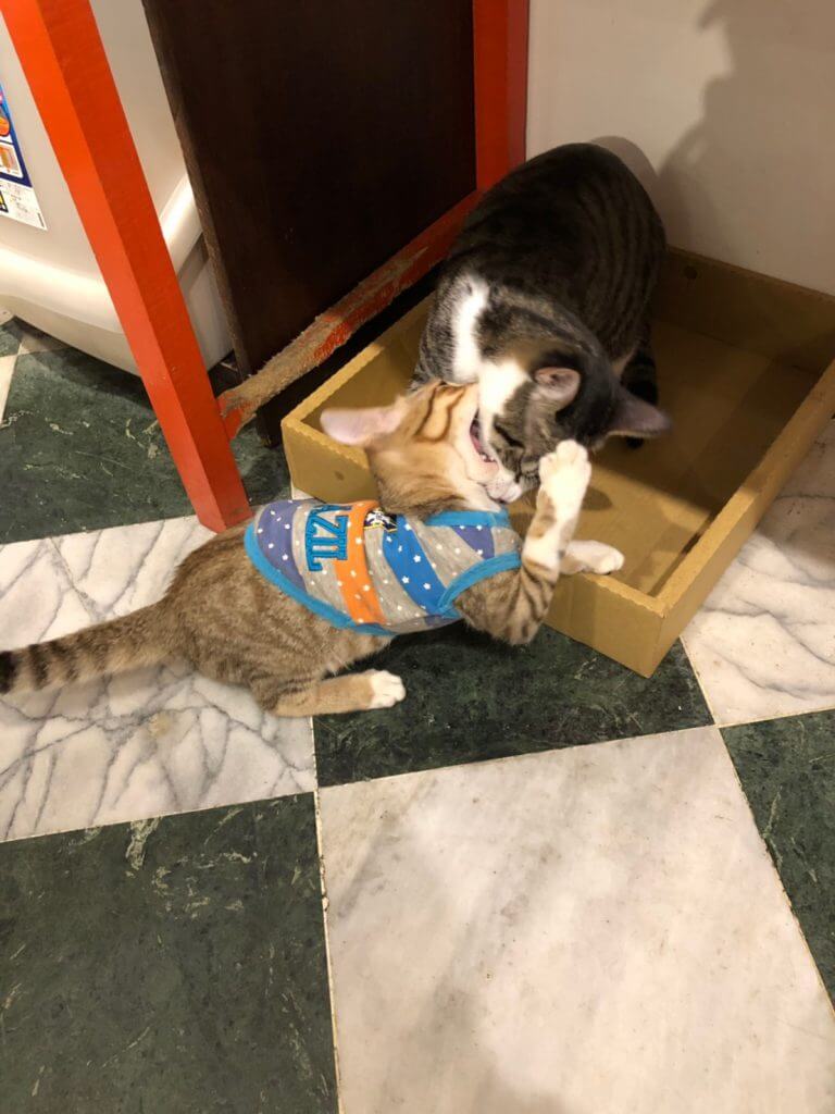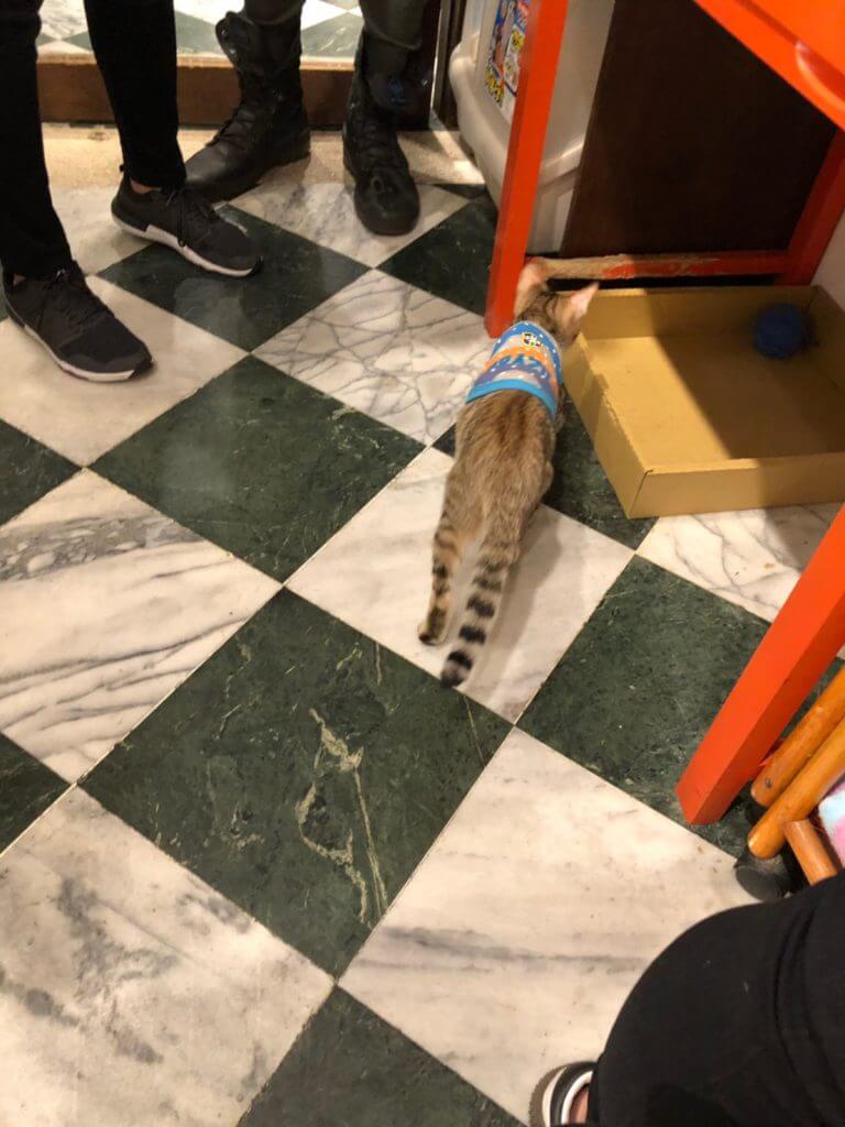 當天在貓區裡看到最活潑好動的就是這隻體型偏小的小貓咪,可以在座位區看到牠飛奔的身影,還時不時去吵其它在休息的貓咪,而最活潑好動的貓咪也是最吸引大家的貓咪,牠身旁總是圍著好幾個人,就像大明星一樣哈哈