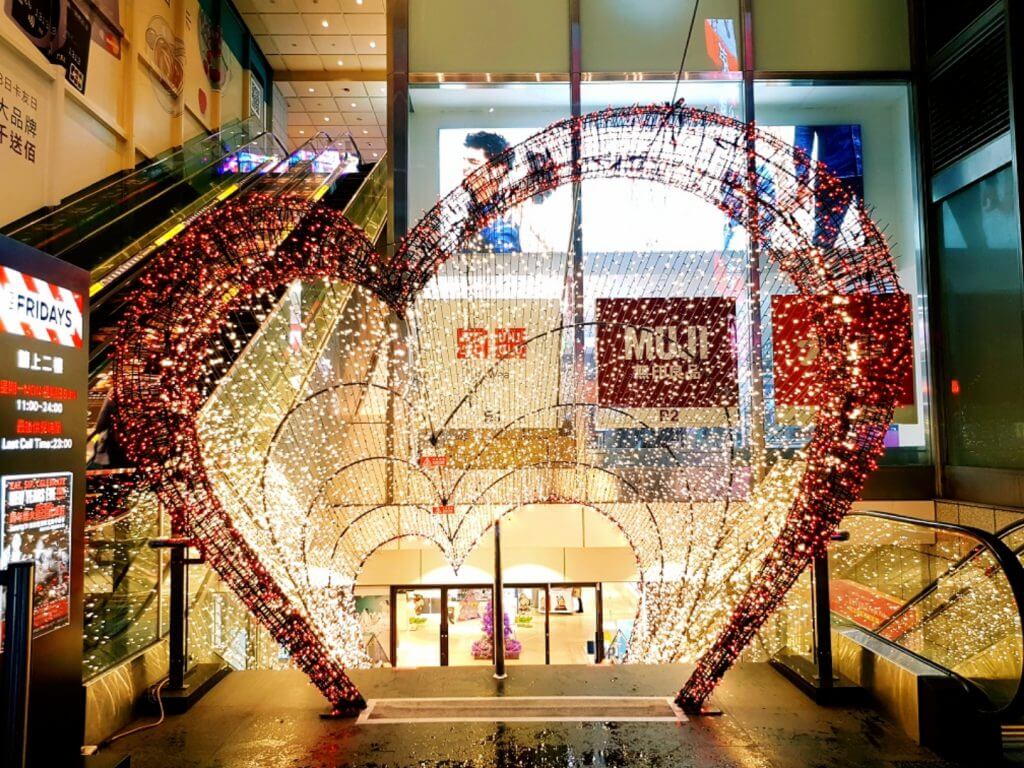 往轉運站的方向我們先看到了一個愛心光廊,有好多情侶在這裡拍照啊,不過這個愛心光廊除了可以從正面拍以外,其實從旁邊的樓梯下去,由下往上拍的角度看起來會更美哦