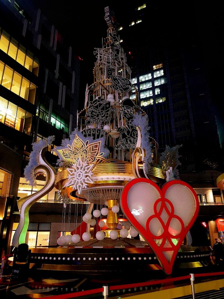 除了百貨公司的裝飾外,在最主要的香堤大道上其實也有不少品牌在這裡擺放他們的聖誕節裝飾,像是賓士就放了一台新車和聖誕樹,公主旅遊則是放了一隻大熊熊氣球,KLOOK則是有巴黎鐵塔及日式建築和櫻花