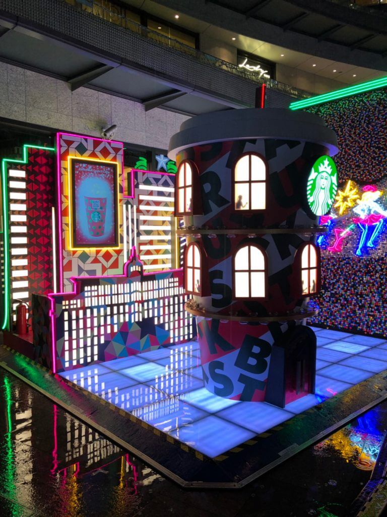 整個廣場上,我最喜歡的就是在星巴克前方的這個小屋子,他和其他裝飾不一樣,這裡除了裝飾本身就亮以外,還有一個小洞可以讓大家進去拍照,光線也夠人拍起來不會有「暗搜搜」的問題