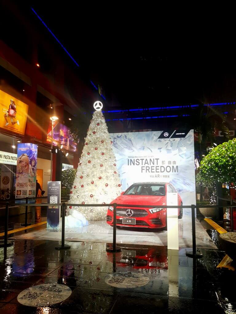 在信義區其實非常容易塞車,我們當天也在車陣中卡了一下子,除了在路上驚嘆看到的聖誕裝置外,其實也很擔心附近的停車場沒有位置,不過這裡其實有好多好多家百貨公司,以停車場的數量來說,應該還是可以容納不少人潮的