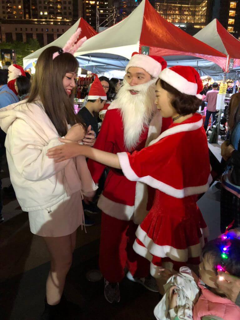 到了活動最中間的時候,我們剛好遇上新北市長在舞台上和大家一起唱聖誕歌,在舞台前還有好幾個搭建起來的棚子,但是人潮真的真的太多了,我們也沒有心思在這裡多做參觀和停留,只能快步離開這可怕的地獄