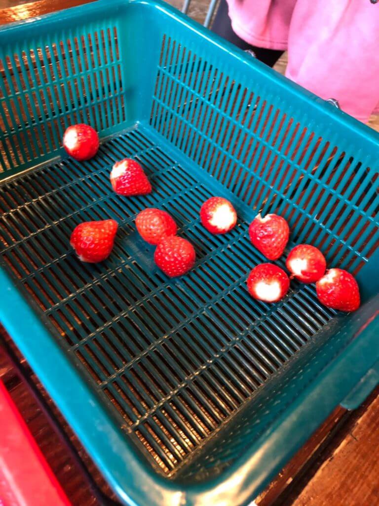 雖然說是草莓季開始了,但是總覺得今天的草莓好像數量並不多,也不確定是不是因為我們來採的時間太晚了,剩下的草莓不是還沒成熟就是過於軟爛,我們繞了一圈下來籃子裡的草莓也寥寥無幾