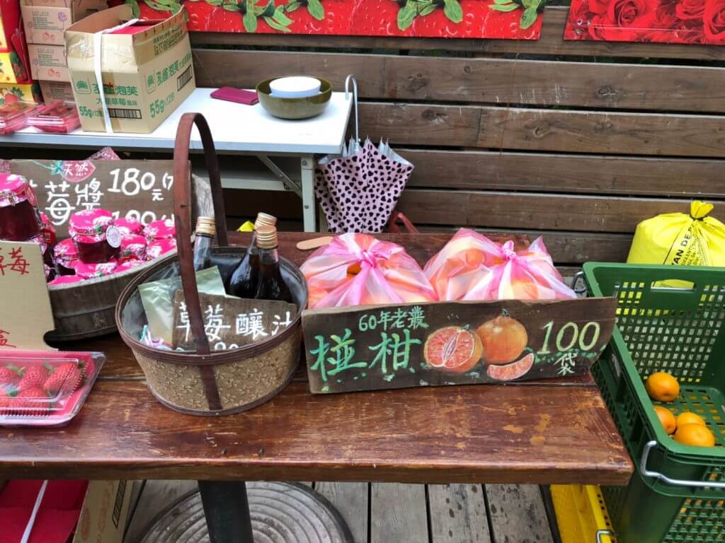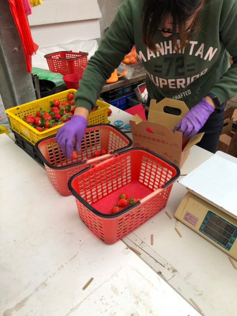 做完草莓醬的我們,接下來的目標當然就是最主要的「採草莓」啦,草莓園入口就在右邊,一進去會先看到秤重的地方,跟一旁已經被採摘裝盒的草莓們,還有不少草莓的相關產品