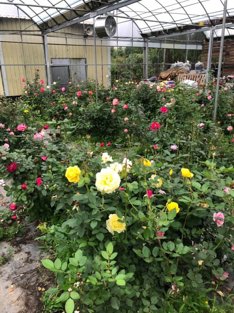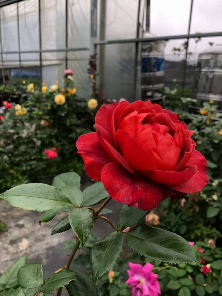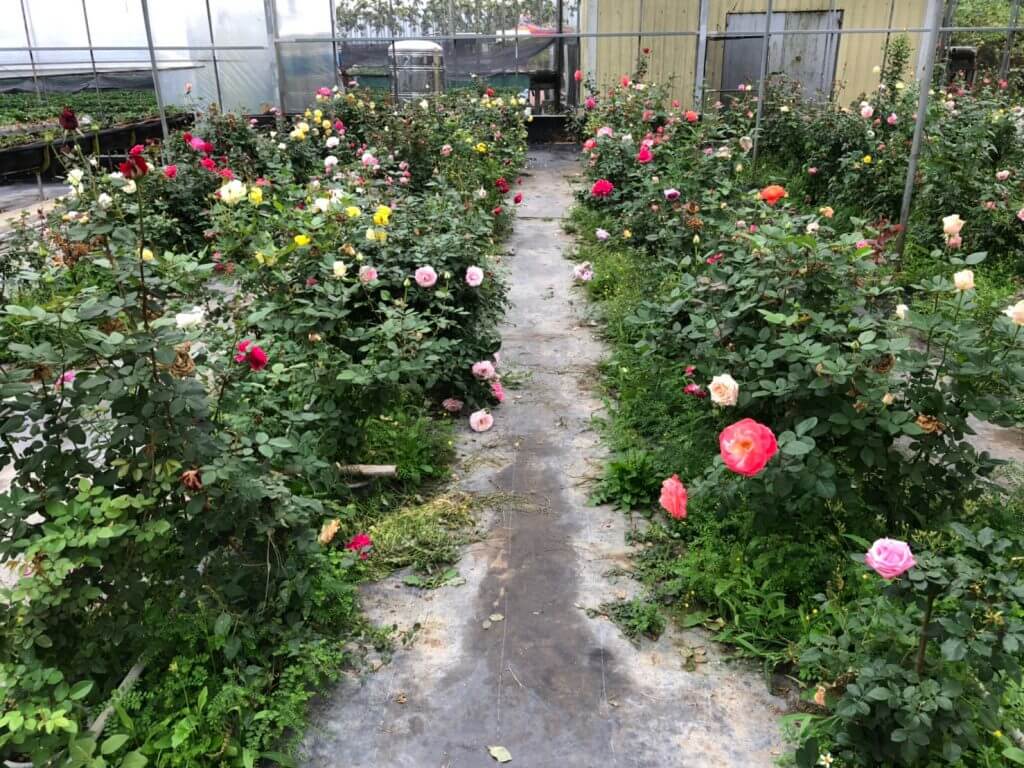 提著我們為數不多的戰利品,我們不急著去秤重,反而帶著它們在園區內遊蕩,在有遮雨棚的範圍裡,除了還有草莓外,一旁還有種植玫瑰及小番茄
