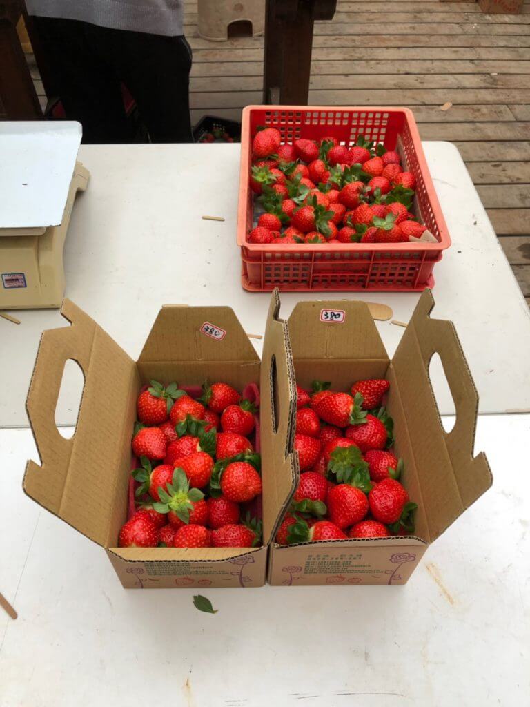 除了可以自己採以外,一旁其實都有一斤一盒的草莓,每一顆看起來都非常飽滿可愛,如果跟我們一樣,沒有採太多草莓的人,不妨考慮購買園方一整盒草莓帶回家