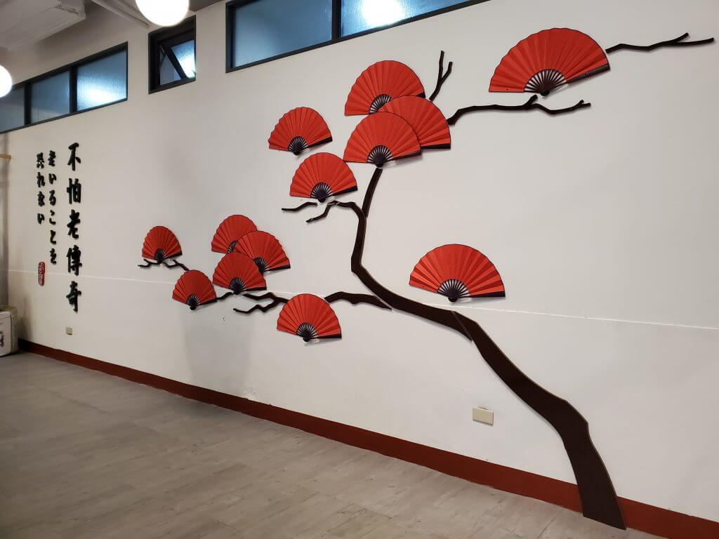 除了這些商品以外,在賣場裡面最吸引我的就是兩個地方,第一個就是一大面的扇子,在配上「不怕老傳奇」的題字,第二個就是在最角落的假櫻花樹,在一大片賣場裡面,這裡意外的讓人感覺很溫馨呢