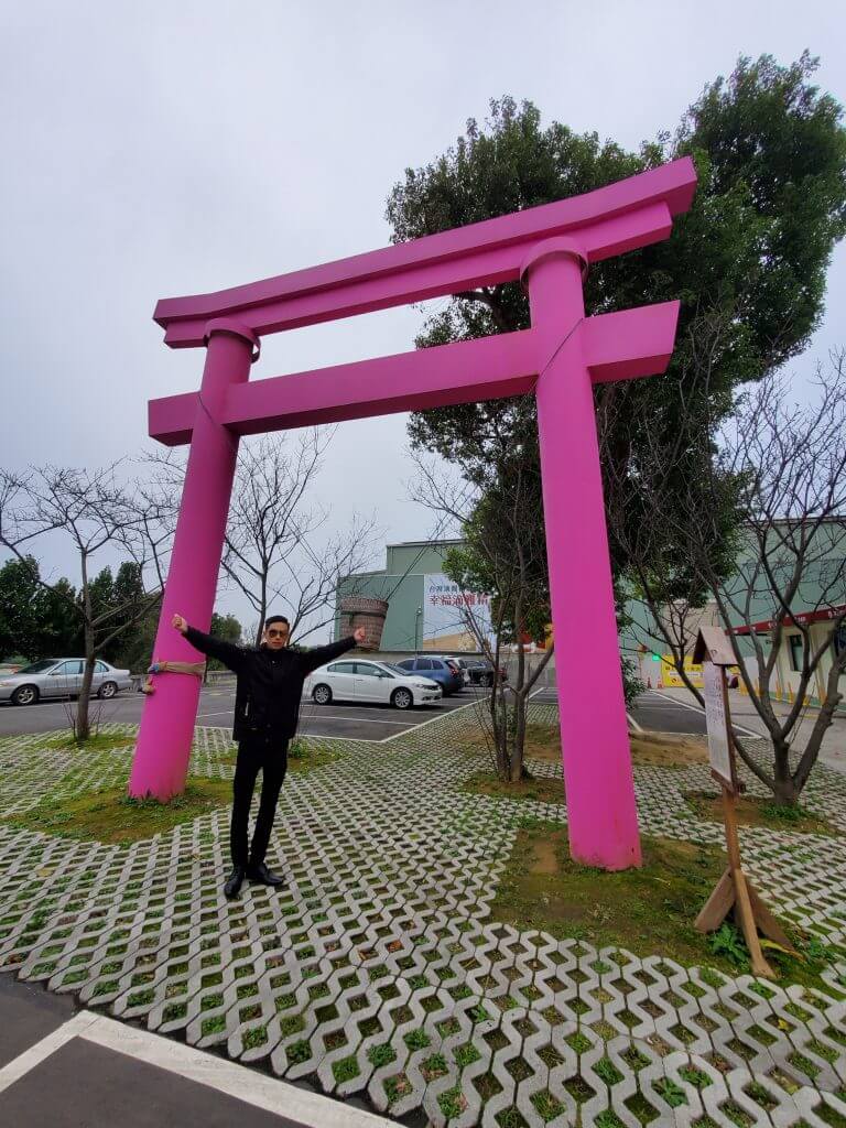 停車場中間有一個非常醒目的大型粉紅色的島居,中間被綁上了一個籃子,據說拿出不限面額的硬幣對著島居祈福,只要能將硬幣投入籃子裡代表會心想事成呢,如果沒投進也不用氣餒,因為這個是可以一直重複的,像當天小伙伴也是試了2.3次才成功將硬幣投進籃子裡