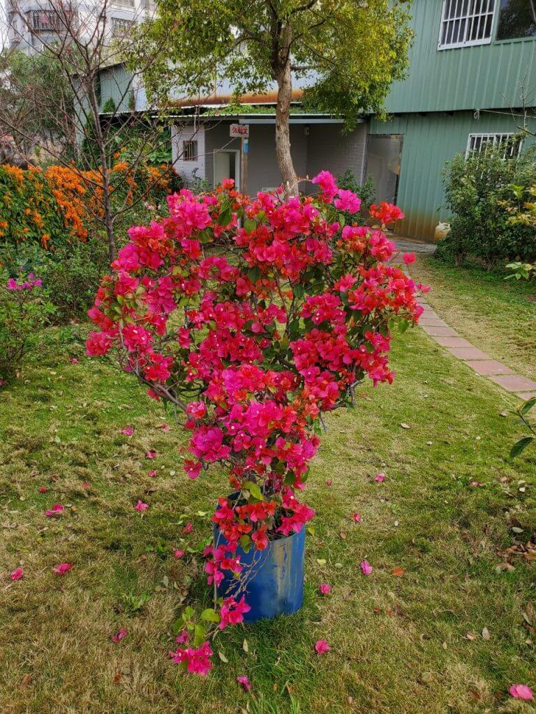 在這炮仗花的主場裡,似乎沒有人去欣賞角落不同的花兒,不過倒是有一個小角落,讓每一個經過的人都會往它的方向看過去,雖然我很想說它是一顆由桃紅色的花組合成的愛心,不過 它的形狀似乎沒有這麼正規,但是我相信他已經盡力而為了