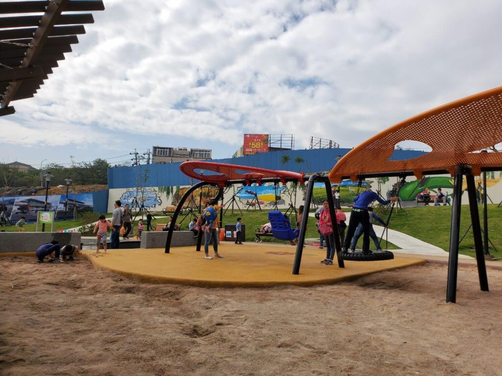 在沙地區則是設置了5個盪鞦韆的位置,除了一般常見的盪鞦韆外,還有網子形狀的,以及小小朋友能夠安全擺盪的盪鞦韆,而且每個座位的距離也不會太近,能夠讓爸爸媽媽近距離的看著小朋友,這部分我覺得非常貼心呢