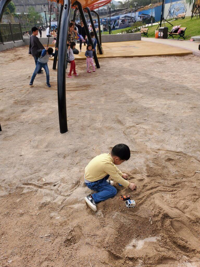 當花拍的差不多的時候,我們更往裡面走一點,就來到了讓小朋友為之瘋狂的遊樂區,遊樂區除了撇除掉常見的罐頭設施外,還有一大片的沙地和玩水區,玩樂的種類這麼多,難怪有不少小朋友吵著玩不夠不想回家呢