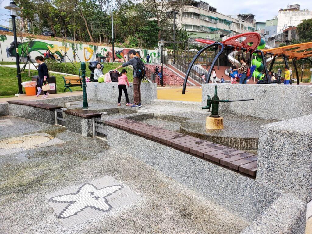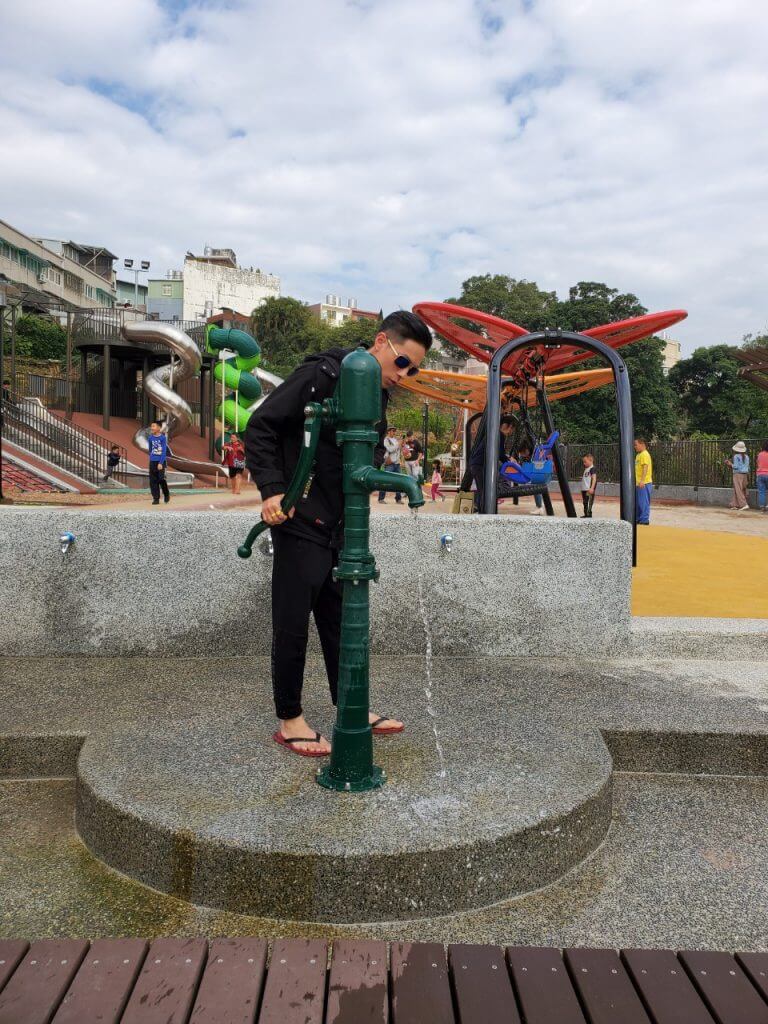 我覺得在這個遊樂區最特別的地方就是在於-玩水區,這裡的玩水區分成3個部分,每個部分之間還有閘門可以開關,要放水也是需要小朋友努力使用打水的器材才能一點一滴的將水裝滿,算是很考驗小朋友合作默契和互相幫忙呢