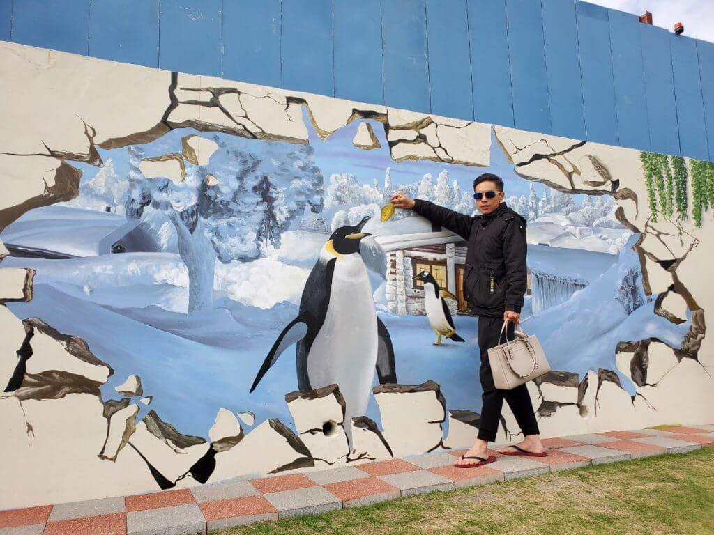 3D彩繪畫進了所有台灣特有種,例如大家都知道的:台灣黑熊、台灣藍鵲外,還有最近一直在呼籲要保育的台灣石虎,通通都被畫進這栩栩如生的畫作裡
