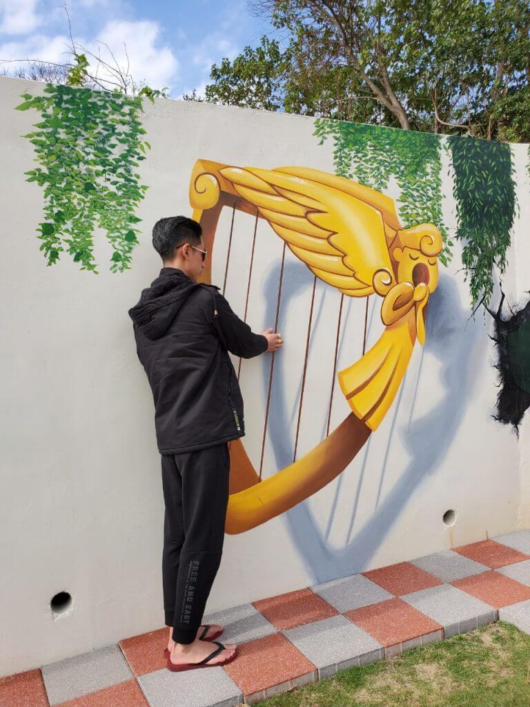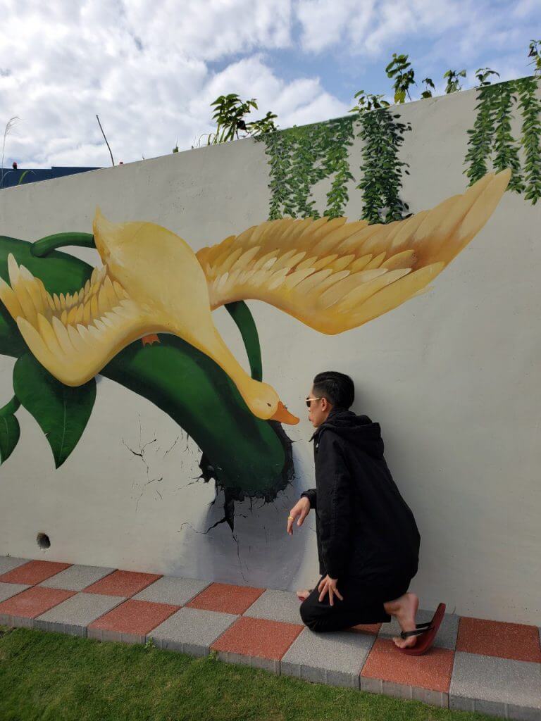 帶小跟屁蟲放完電以後,我們來到最後一個區塊,那就是這一整面牆的立體畫,依照角度錯覺,可以拍出一幅幅互動性的照片喲