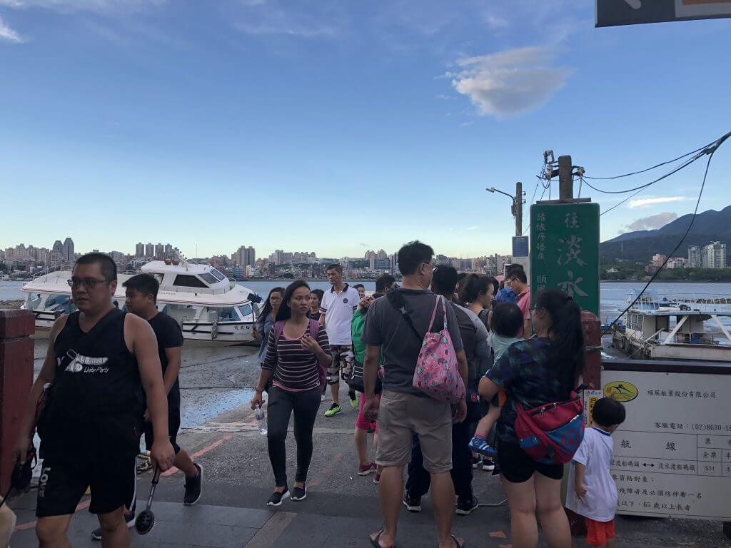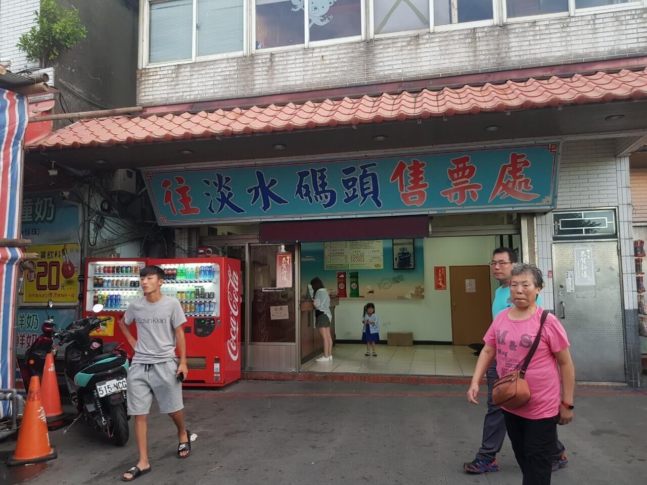 走進八里老街的下斜坡後,就會看到有人潮在排隊等著搭船至淡水,而左邊就能看到船票的售票亭,如果不想買票,使用悠遊卡也是可以直接嗶卡上船哦