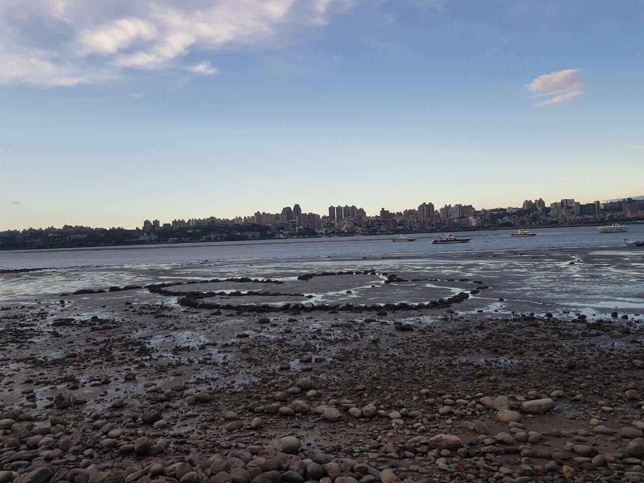 來的時間剛好退潮,讓我看到了八里版的雙心石滬
