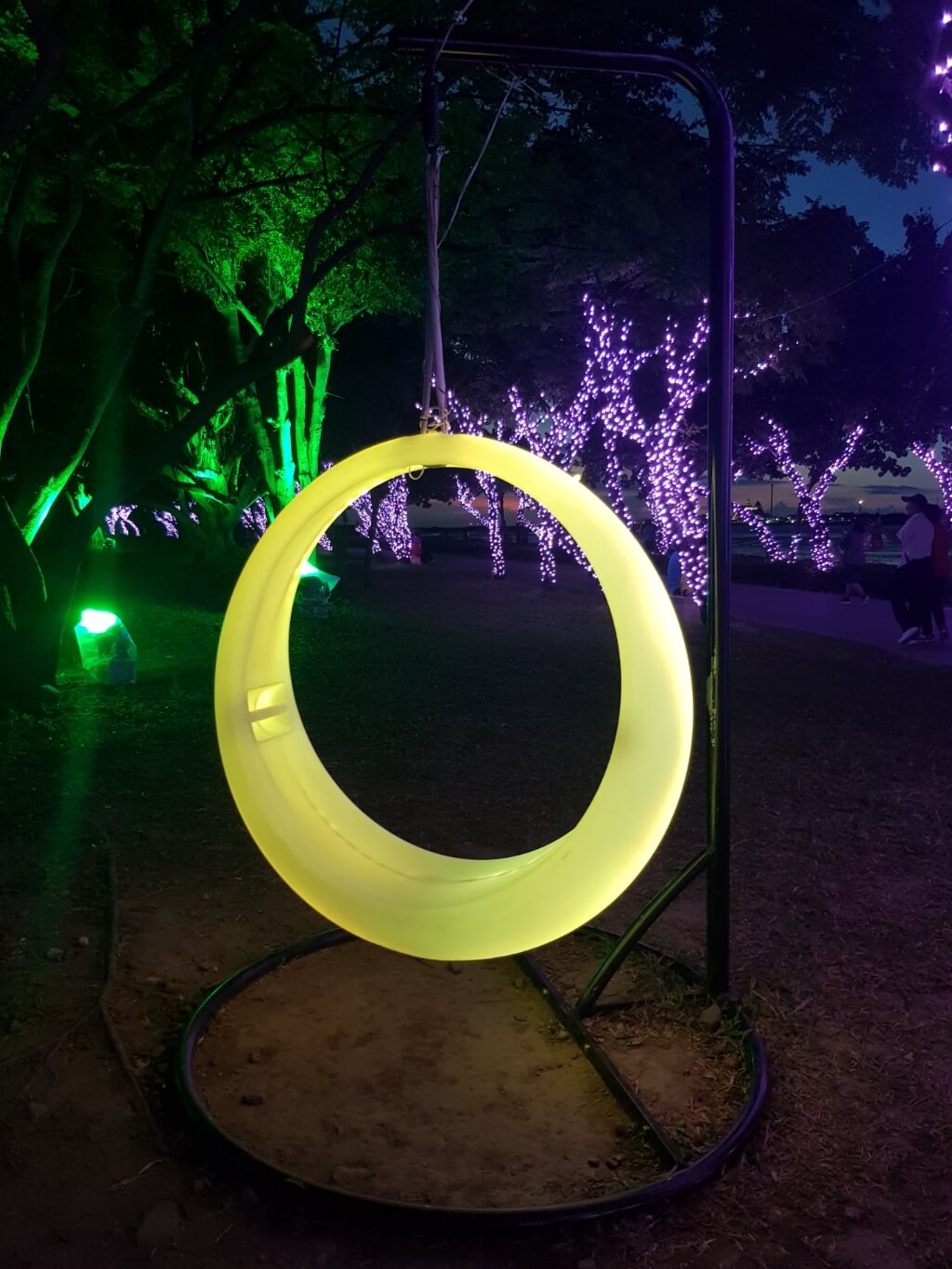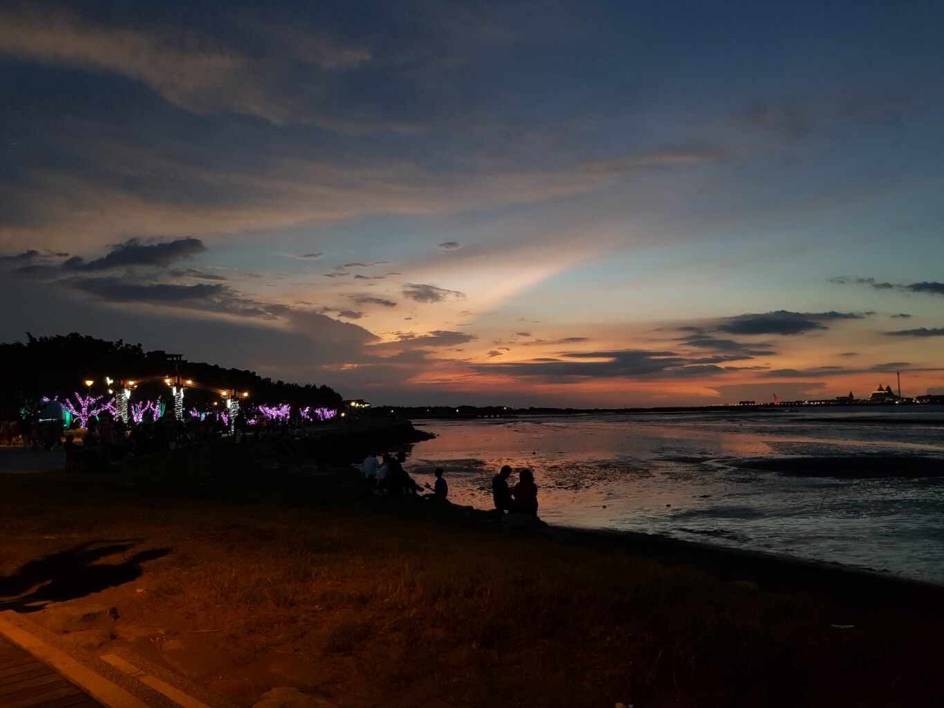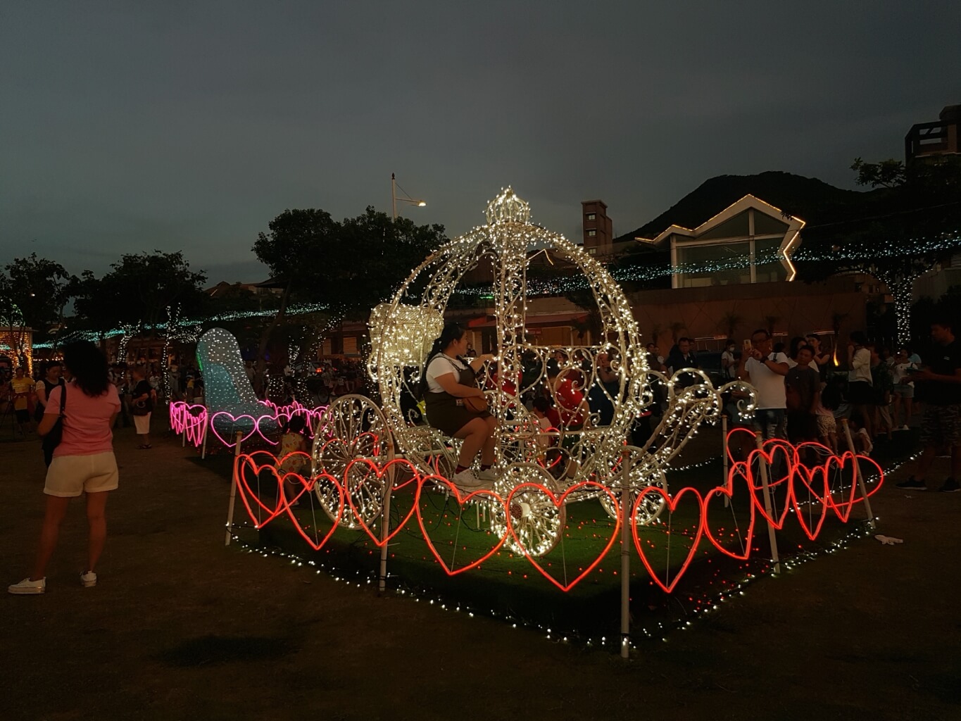 這時夕陽西下,周遭的光雕紛紛開始點燈,人潮也越來越多