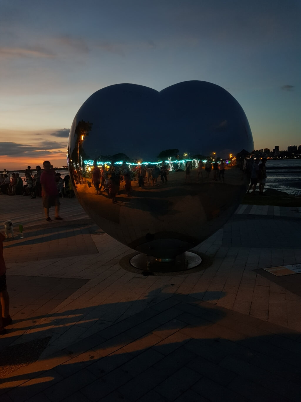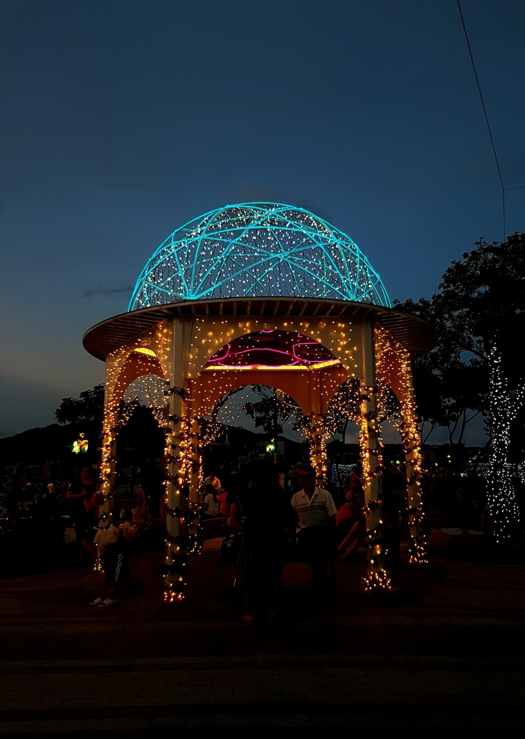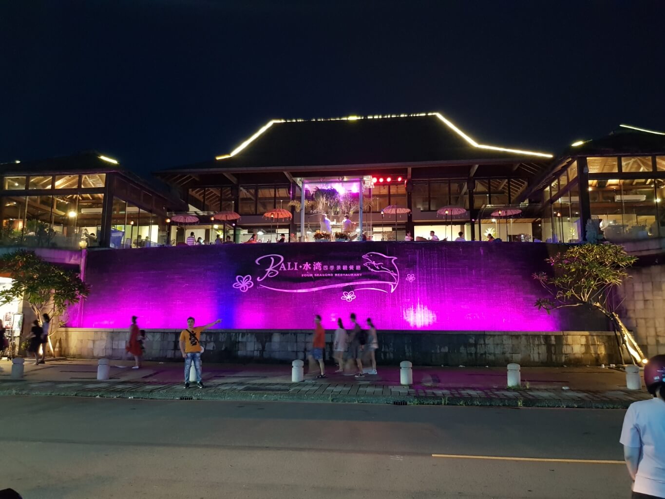 這時夕陽西下,周遭的光雕紛紛開始點燈,人潮也越來越多