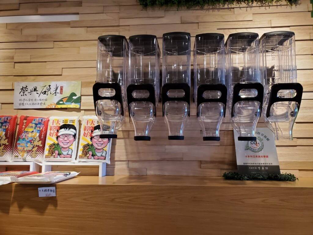 在座位區旁邊的牆上,販賣了各式各樣的米,甚至還將品牌一區一區的區分開來,畢竟這裡是關於「便當」的故事館,販賣這些米完全就是促進了大家的消費慾望啊 ~