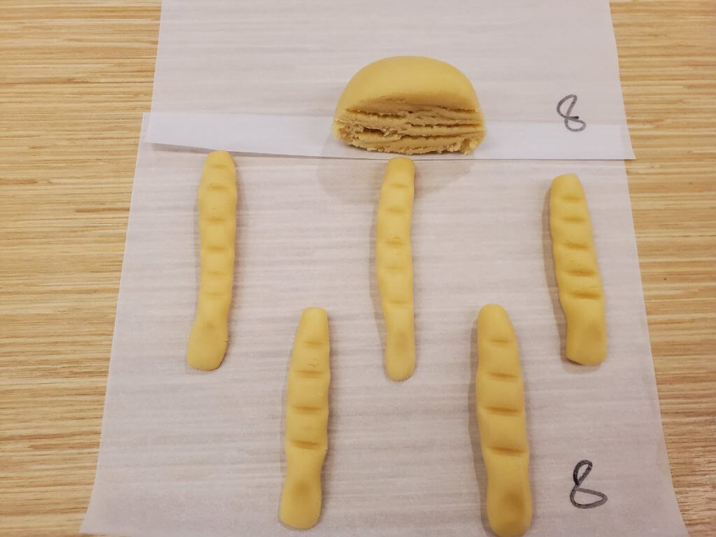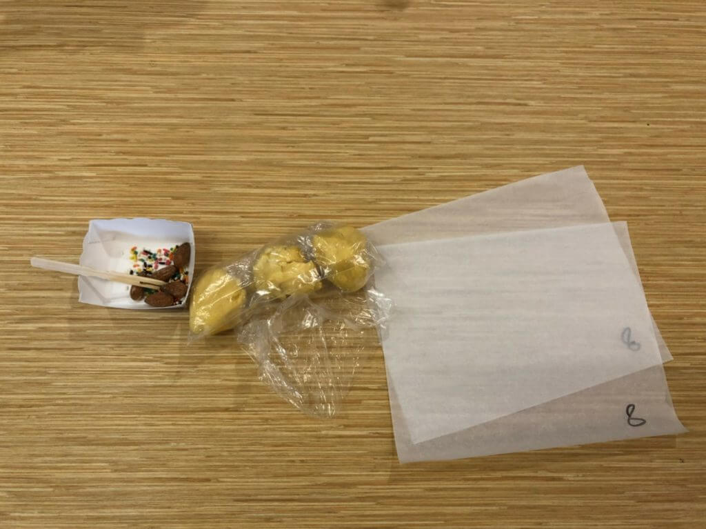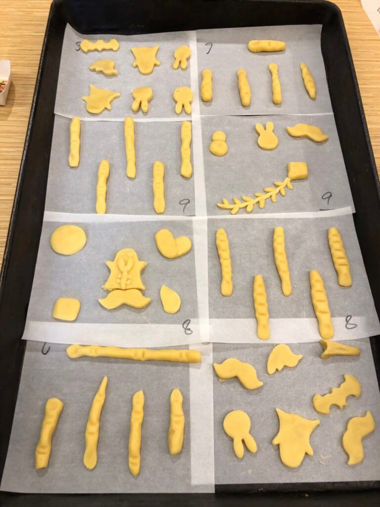 而我們今天做的則是「巫婆手指」,是一款很簡單就能做成的餅乾,在課程開始之前,都要先去用洗手乳將雙手洗乾淨,小朋友的話,DIY老師則是會發一頂小廚師帽跟圍兜兜給小朋友,穿起來專業又可愛呢