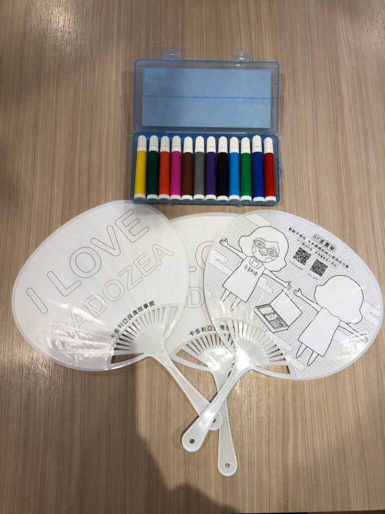 大家的半成品集中到烤盤以後,就由DIY老師幫我們送進烤箱,而等待烤餅乾的這段時間,DIY老師則是一人發了一把扇子和提供彩色筆,讓大家可以在座位區塗色,小朋友也不會覺得等待時間太久