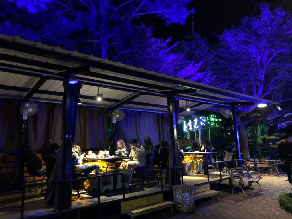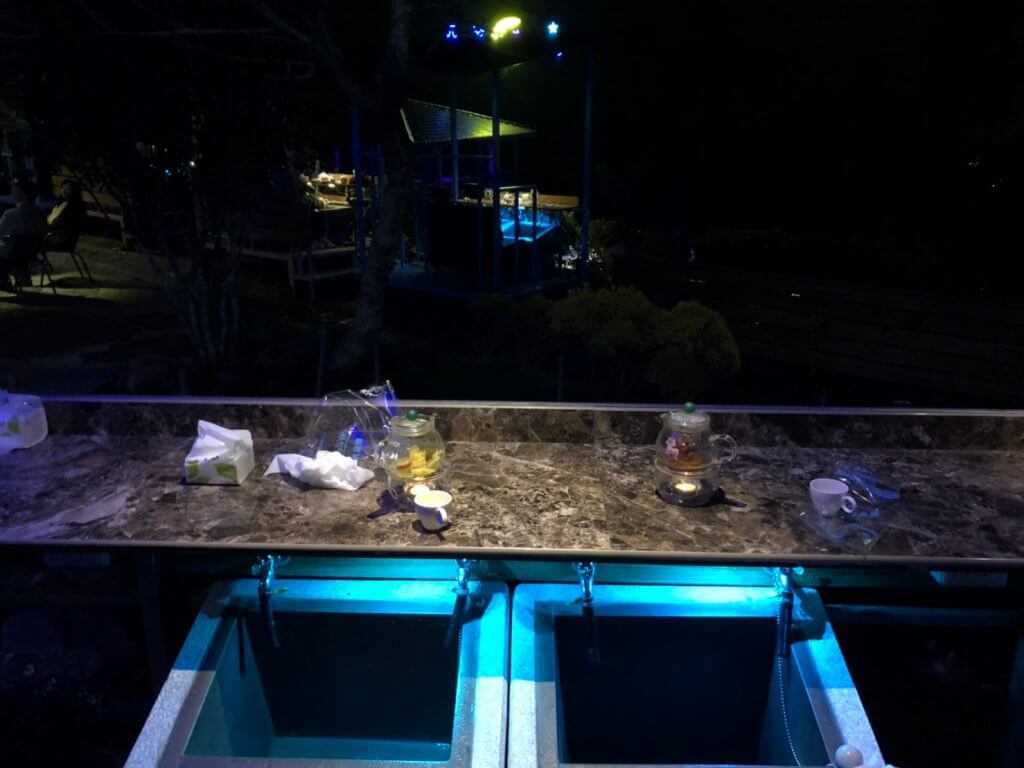 也許是因為年假再加上天氣還不錯,我們大概7.8點到的時候,泡腳的幾乎都已經滿位了,雖然就單單吃飯的話,是不需要等的,但是我們來到這裡就是想嘗試邊泡腳邊賞夜景啊 !!!