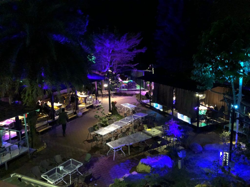 不得不說雖然在2樓的視野比較好,不過這裡的夜景和台北的比起來似乎遜色不少,有點像是著重於泡腳放鬆,唯一能看的夜景除了遠方稍稍一小角外,就是店裡的造景了