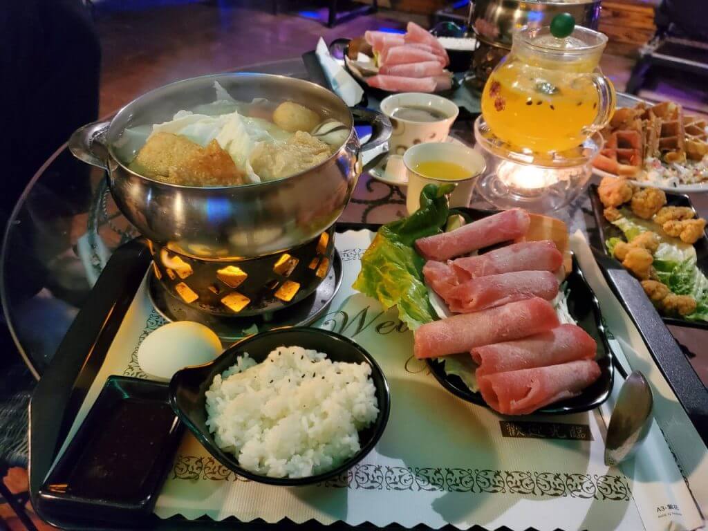 雖然看起來人滿多的,不過當天送餐速度還是挺快的,我和小伙伴都還沒有吃晚餐,就一人點了一份小火鍋,還點了幾份小點心,不一會兒桌上就擺滿了我們的餐點