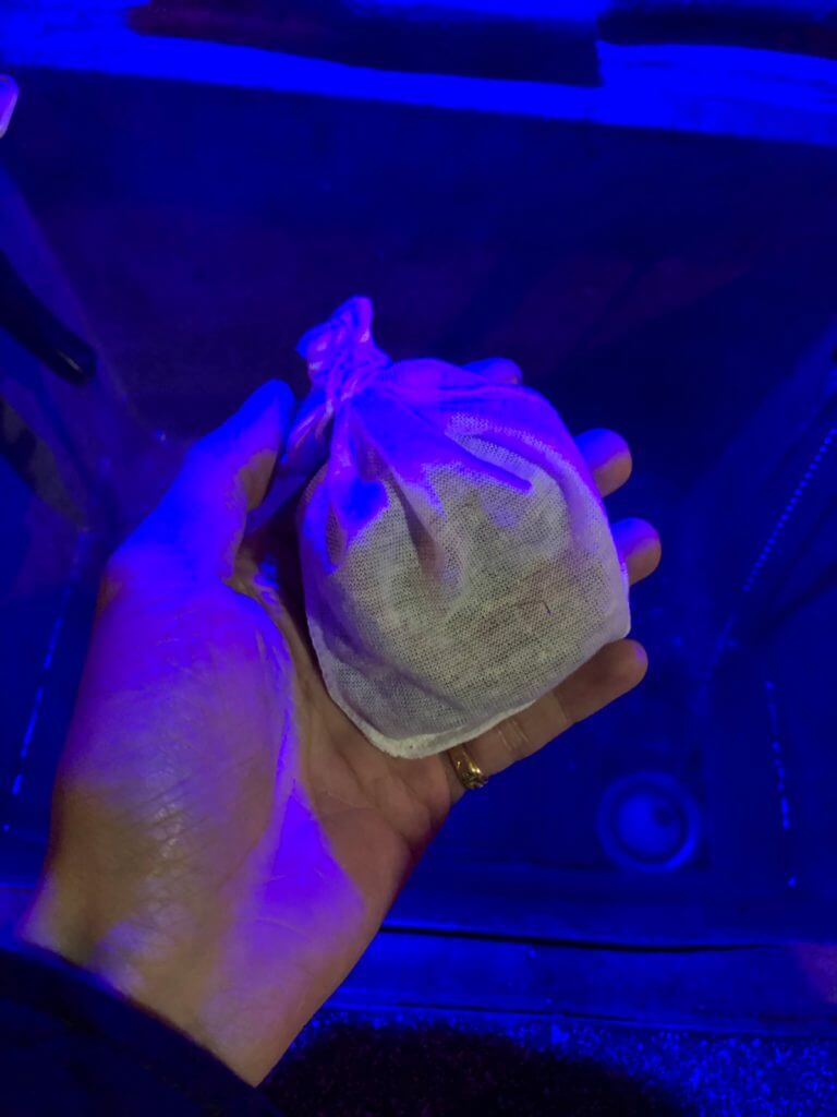 當我和小伙伴就定位準備開始泡腳的時候,發現在每個座位上都附了拋棄式毛巾和一個類似藥包之類的東西,這部分讓我覺得很貼心很加分耶 ~