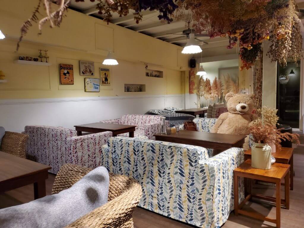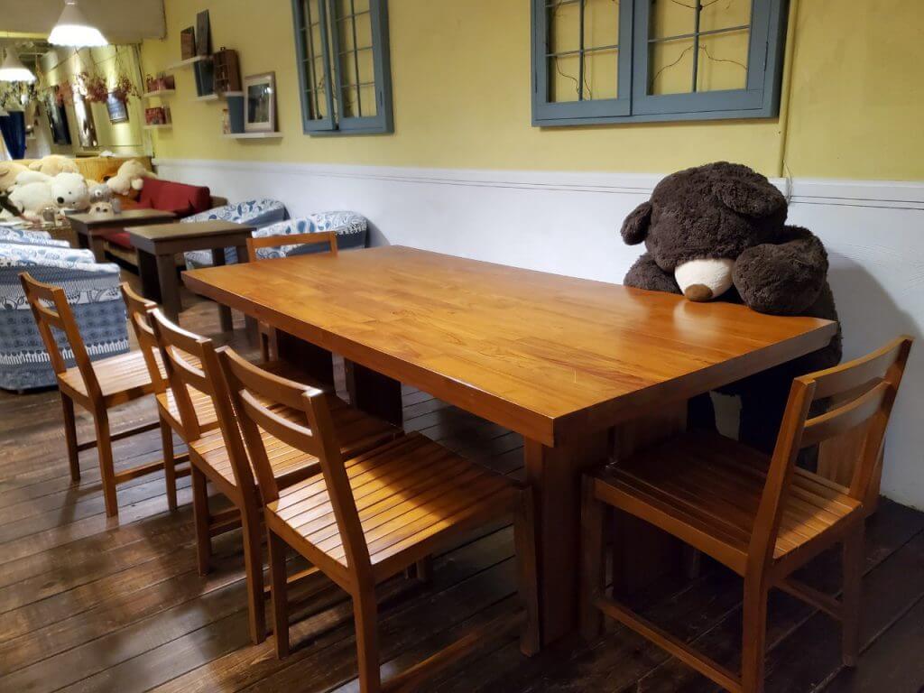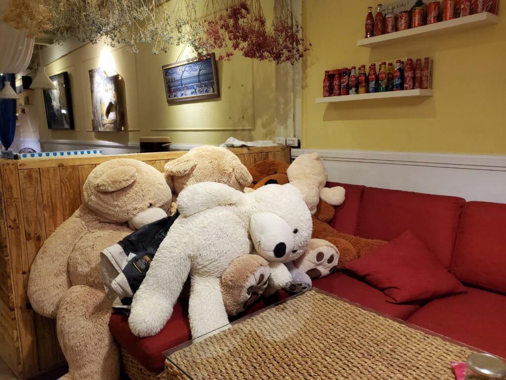 在比較靠門口有一個座位,堆滿了各式各樣的小熊,我在想這裡的小熊應該是可以讓客人拿取拍照的,但是在拿取之前還是要先詢問過店家哦