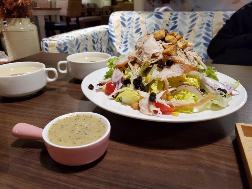 我和小伙伴從吃完午餐後就沒有吃東西了,這時候的我們肚子其實都已經在咕咕叫抗議著,我們一人點了一份套餐,另外在多點了一份沙拉,原本還想著這樣子兩個人應該吃的完才對,沒想到一上菜後我和小伙伴都傻眼了