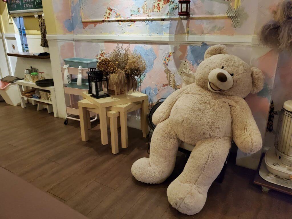 當天我們來到這裡的時候,工作人員直接帶我們到有大熊熊的沙發座位,少女心噴發的我實在是按奈不住自己的情緒,對著熊熊戳來戳去哈哈哈