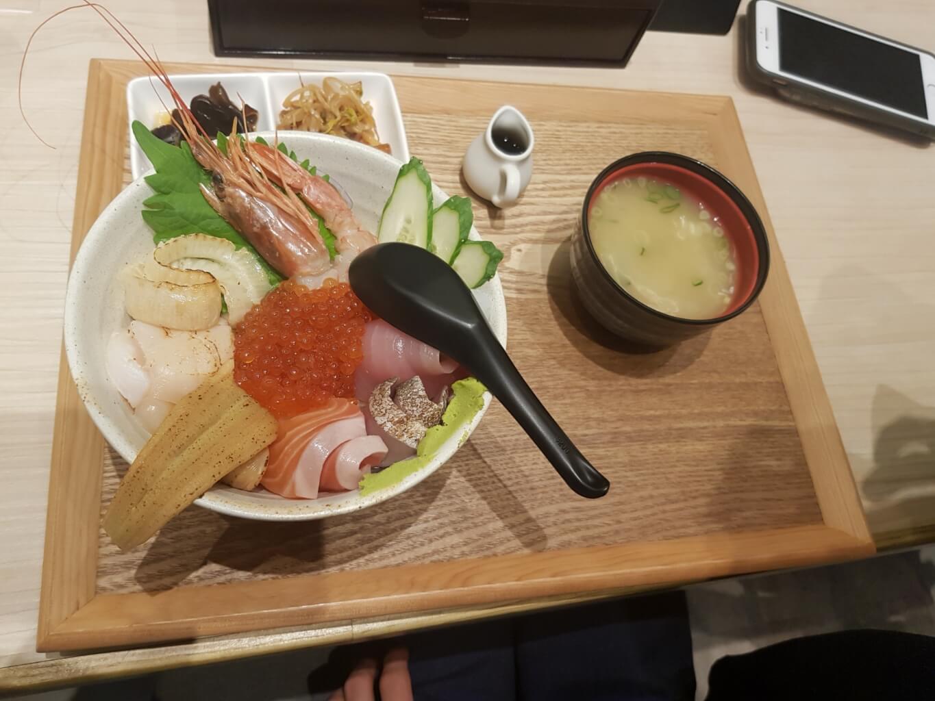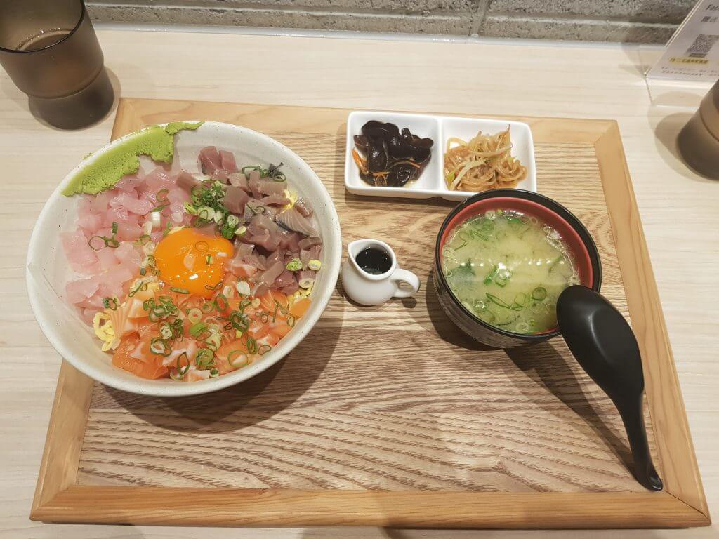 我們分別點了「丁丁三色海鮮丼套餐」和「無敵海景丼套餐」,套餐都會附兩份小菜及一碗味增湯哦